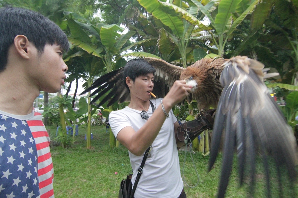 | Vốn mê nuôi chim từ thời tiểu học, sau khi thử nuôi nhiều loài chim hót, hai anh em song sinh Nguyễn Việt Anh (trái) và Nguyễn Nhật Anh (1991), sống tại TP.HCM đã chuyển sang nuôi loài chim săn mồi như chim cắt, chim ưng... Đến năm 2012, cả hai nuôi chim đại bàng. |