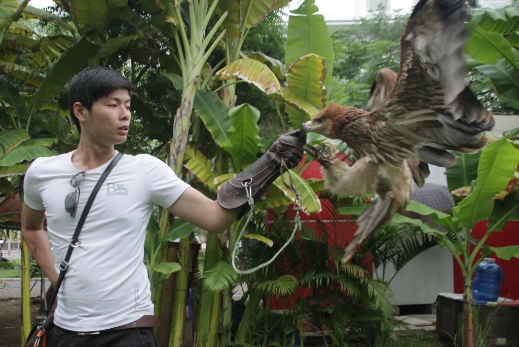 | Theo Việt Anh, việc nuôi chim và huấn luyện chim đại bàng cũng không đơn giản, cần nhiều kiến thức, kinh nghiệm nên phải nhập tài liệu từ nước ngoài về nghiên cứu. Cần thiết phải có một chiếc bao tay bằng da bò để giữ cho tay không bị thương khi cho chim đậu trên tay và dễ thao tác khi huấn luyện chim. |