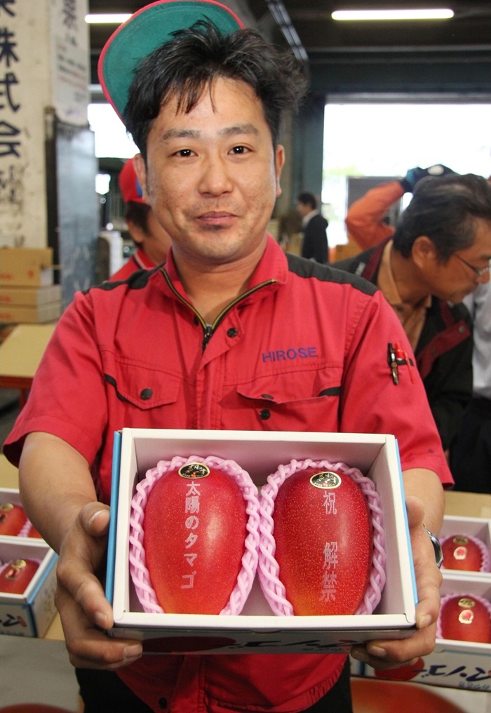 Cặp xoài nói trên đạt danh hiệu 'Taiyo no Tamago'. Để đạt được danh hiệu này, sản phẩm phải vượt qua sự xét duyệt khắt khe, quả nặng trên 350 g và có độ ngọt nhất định.