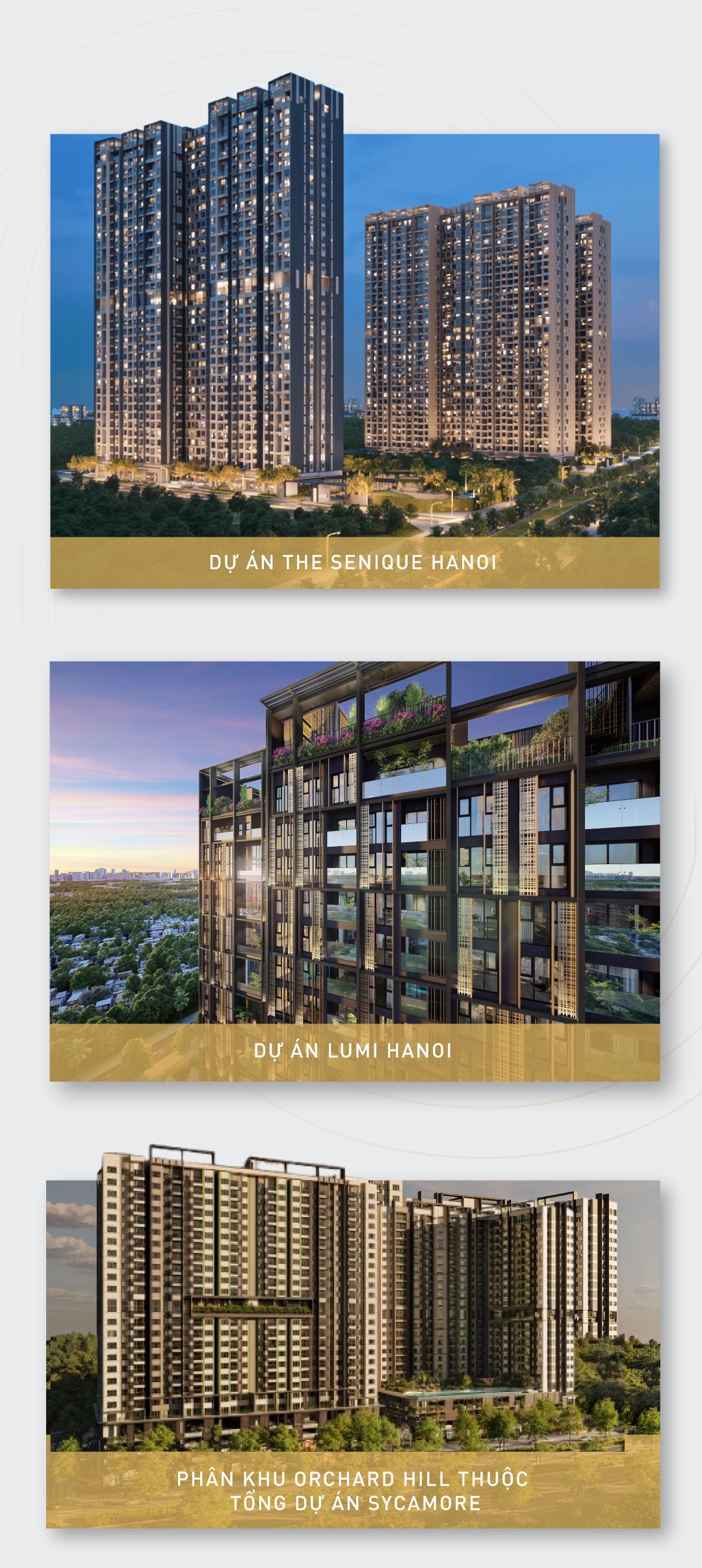 Từ đó, Tập đoàn đã mở rộng danh mục đầu tư với việc ra mắt các dự án nhà ở chất lượng cao. Các dự án nổi bật gần đây như Define, Heritage West Lake, Lumi Hanoi, The Senique Hanoi hay Sycamore đã trở thành những biểu tượng của kiến trúc hiện đại, mang đậm triết lý phát triển bền vững - yếu tố cốt lõi trong mọi hoạt động của tập đoàn.