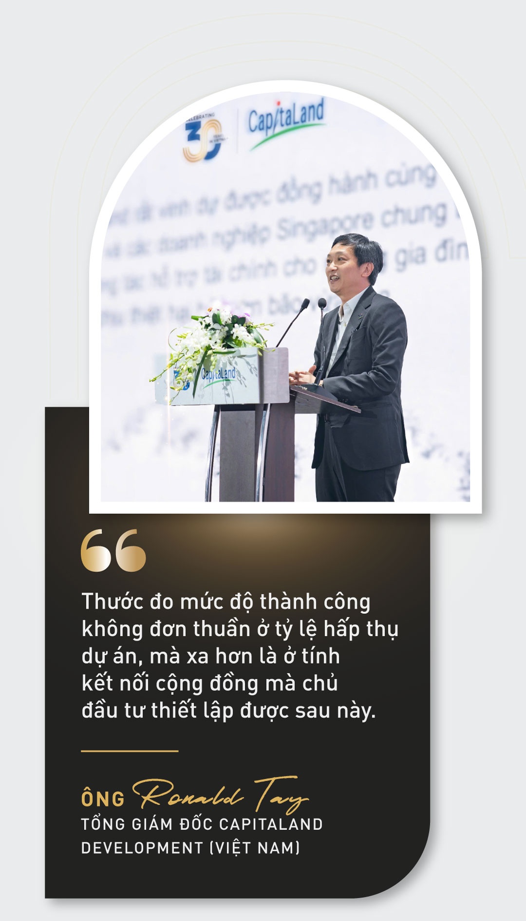 Gần nhất, trong buổi trao đổi với Znews, ông Ronald Tay, Tổng Giám đốc CapitaLand Development (CLD) tại Việt Nam, đã chia sẻ: “Dấu ấn 30 năm đáng tự hào là nền tảng vững chắc để chúng tôi hướng đến tương lai với những mục tiêu chiến lược dài hạn. CapitaLand cam kết đóng góp nhiều hơn nữa cho sự phát triển của bất động sản Việt Nam - thông qua việc mang đến những sản phẩm bất động sản toàn diện nhằm đáp ứng nhu cầu đa dạng của khách hàng và lan tỏa các giá trị bền vững cho cộng đồng.”