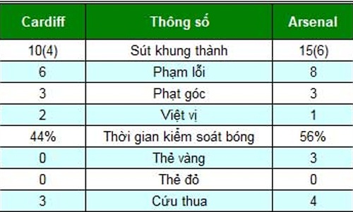 Vượt qua Cardiff một cách thuyết phục, Arsenal tiếp tục dẫn đầu bảng xếp hạng với 31 điểm sau 13 vòng đấu, tạm thời hơn 7 điểm so với nhóm bám đuổi phía sau.