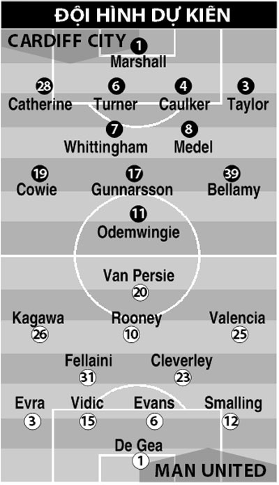 Với tương quan hiện nay, Cardiff xem ra quá nhỏ bé trước Quỷ đỏ. Cả 4 lần đối đầu với Man United gần đây nhất, đội bóng Xứ Wales đều thảm bại. Nhiều khả năng, đêm nay họ lại tiếp tục để cho Man United mở hội tại sân Cardiff City.
