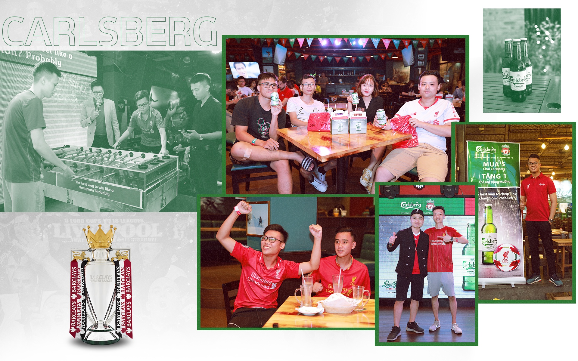 Gần đây nhất, giới túc cầu tiếp tục được chứng kiến khoảnh khắc lịch sử khi thầy trò HLV Klopp giành chiếc cúp vô địch Premier League sau 30 năm chờ đợi. Để ăn mừng danh hiệu này, Carlsberg triển khai chiến dịch “Feel like a Champion” giúp người hâm mộ tại Việt Nam được cảm nhận, cổ vũ và ăn mừng, thưởng thức men say chiến thắng hòa quyện trong men bia Carlsberg Premium Smooth Draught - dòng bia có lớp bọt dày mịn, chất bia êm mượt cùng hương vị cân bằng, trọn vẹn như bia tươi vừa mới rót.