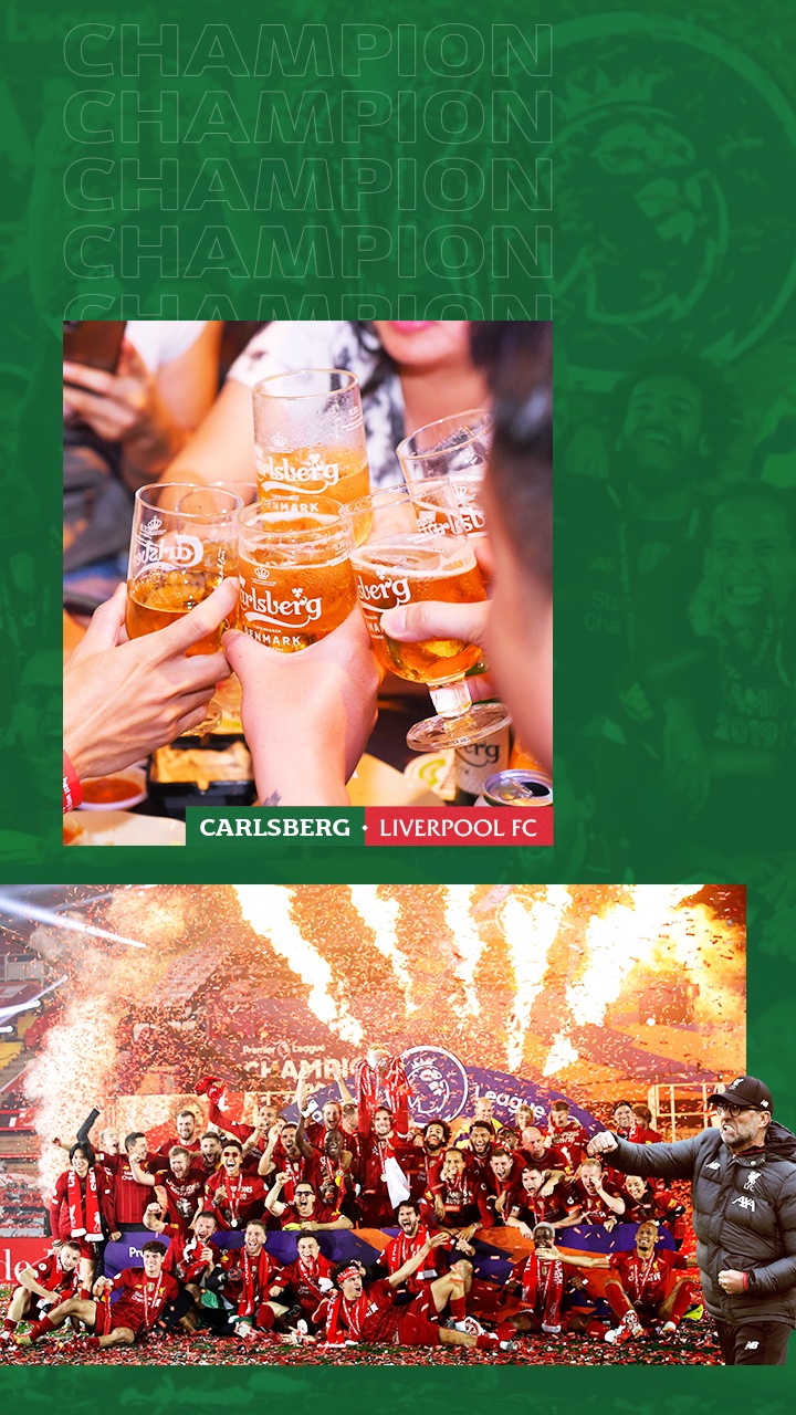 Sau nhiều thăng trầm, Liverpool FC dưới tài cầm quân của HLV Klopp đã chứng minh sức mạnh và bản lĩnh của nhà vô địch khi liên tiếp đăng quang UEFA Champions League, Siêu cúp châu Âu, FIFA Club World Cup và gần đây nhất là Premier League. Chức vô địch sau 3 thập kỷ chờ đợi này khẳng định phẩm chất luôn tồn tại thường trực trong bóng dáng nhà vô địch: Kiên nhẫn, bền bỉ, chờ đợi thời cơ và sẵn sàng bứt phá. Hành trình của bản lĩnh và niềm tin, không ngừng theo đuổi đam mê cùng những đỉnh cao mới của cả Carlsberg và Liverpool FC biến mối duyên của hai thương hiệu trở thành biểu tượng toàn cầu.