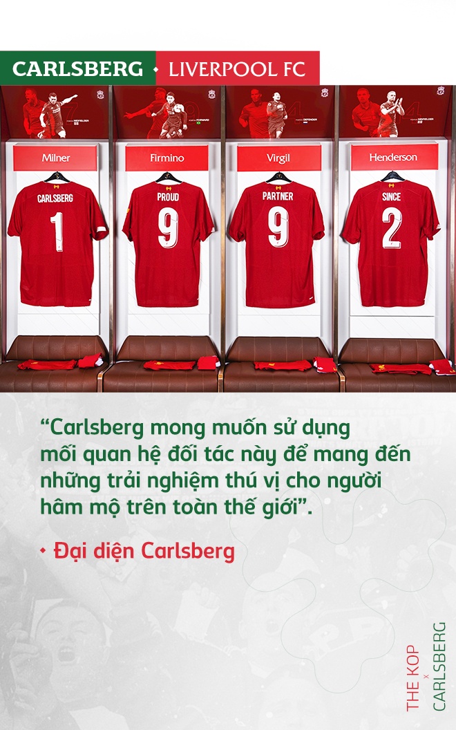 Đại diện của Carlsberg từng chia sẻ: “Mối quan hệ giữa Carlsberg và Liverpool FC mang tính biểu tượng. Chúng tôi rất hào hứng về tương lai của CLB và tự hào vì đã là một phần của gia đình Liverpool FC trong hơn 1/4 thế kỷ. Carlsberg mong muốn sử dụng mối quan hệ đối tác này để mang đến những trải nghiệm thú vị cho người hâm mộ trên toàn thế giới”.