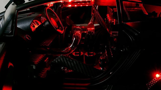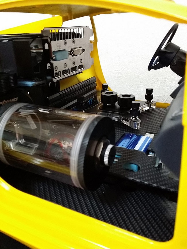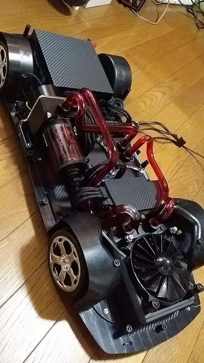 | "Sàn xe" mới, cpu được gắn block tản nước. |