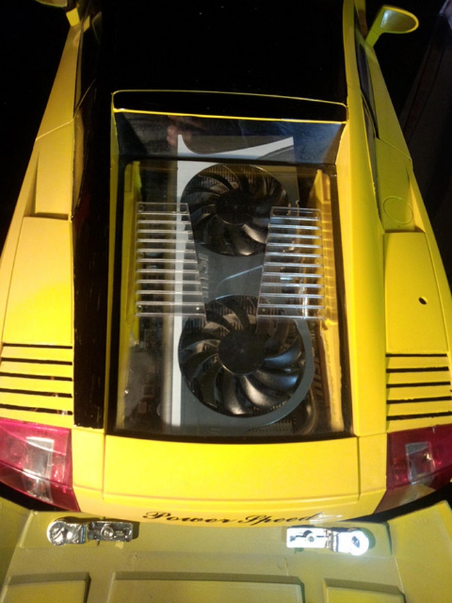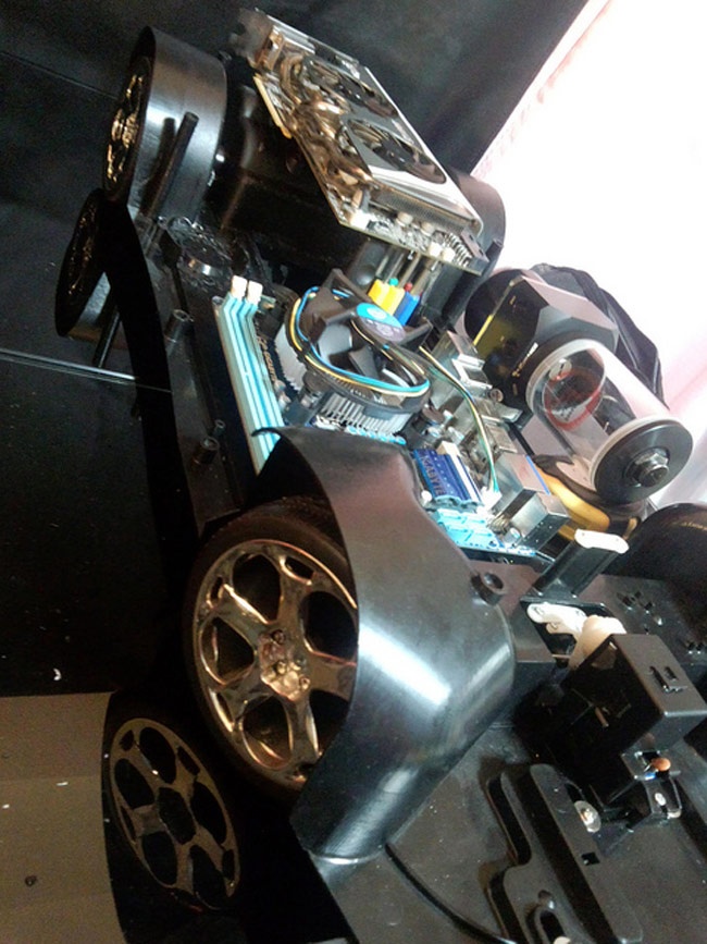 | Cắt gọt vỏ xe để lộ vga ở vị trí đặt động cơ. |
