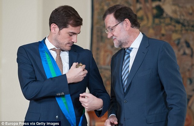 | Casillas bên cạnh Thủ tướng Mariano Rajoy. Ảnh: Getty. |