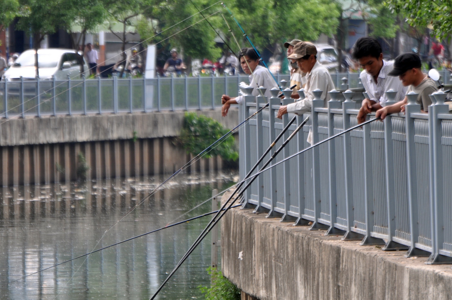 | Các loài cá sinh sôi, phát triển, tung tăng bơi lội trên dòng kênh Nhiêu Lộc - Thị Nghè khiến nơi đây trở thành điểm vui chơi, hóng mát lý tưởng của người dân thành phố. Nhưng tại đây, hàng ngày cũng thu hút hàng trăm cần thủ đến tận diệt cá. |
