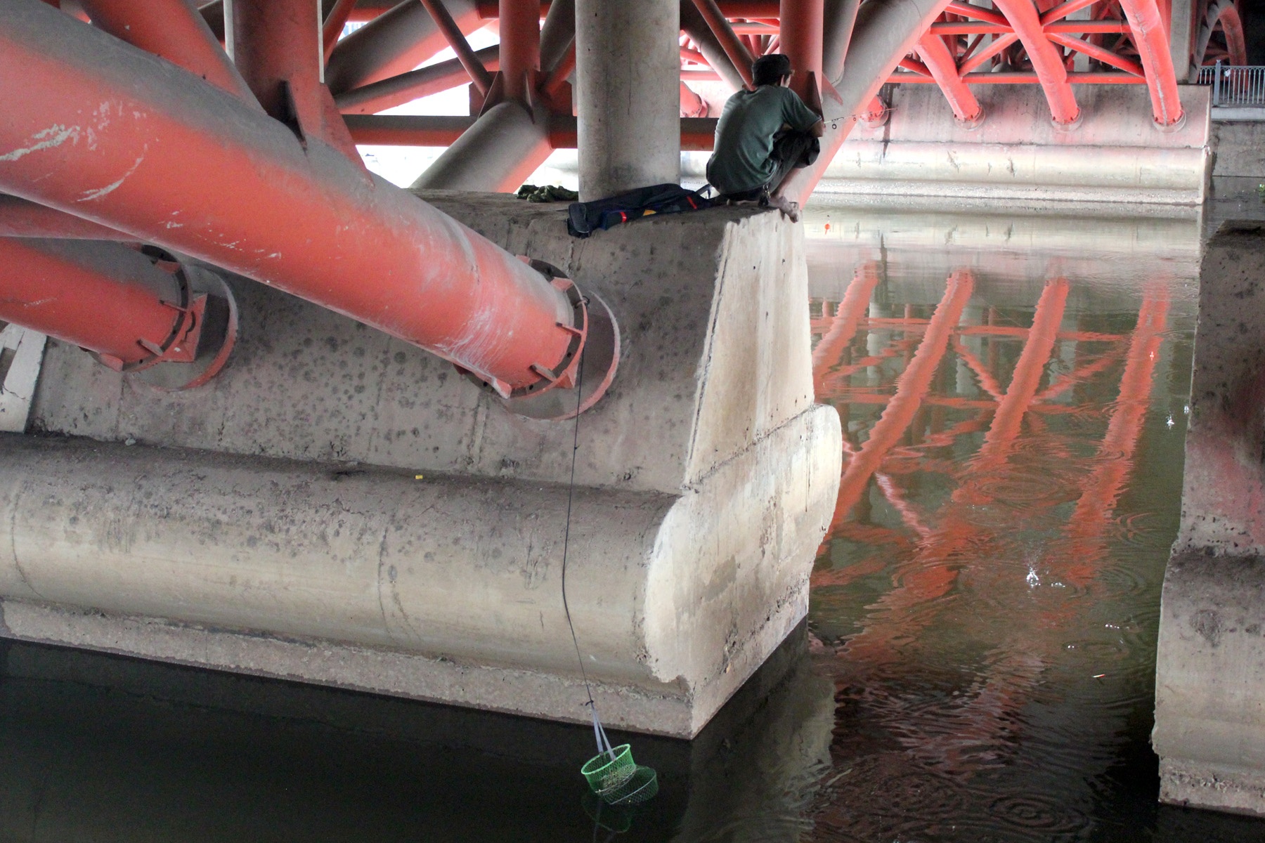 | Một nữ cần thủ ngày nào cũng thả câu đoạn giữa cầu Hoàng Hoa Thám - cầu Bông, quận Phú Nhuận và Bình Thạnh. |