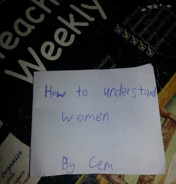 | Mẩu lời nhắn đáng yêu của Cem. Cậu bé không biết làm cách nào để hiểu được phụ nữ. |