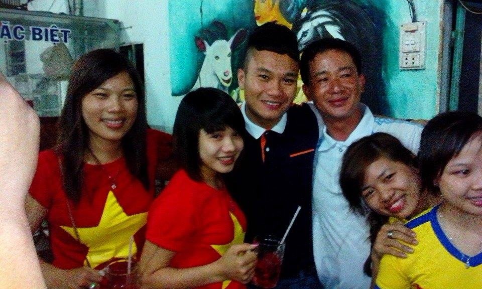 | Trung vệ Mạnh Hùng tranh thủ gặp gỡ bạn bè. |