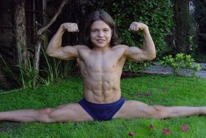Bắt đầu với những vài tập nhẹ nhàng, chỉ sau vài năm, tiểu Hercules đã nhanh chóng đạt được thể hình của một vận động viên chuyên nghiệp. Không những khỏe, cậu còn rất dẻo dai. (Ảnh: Reddit)
