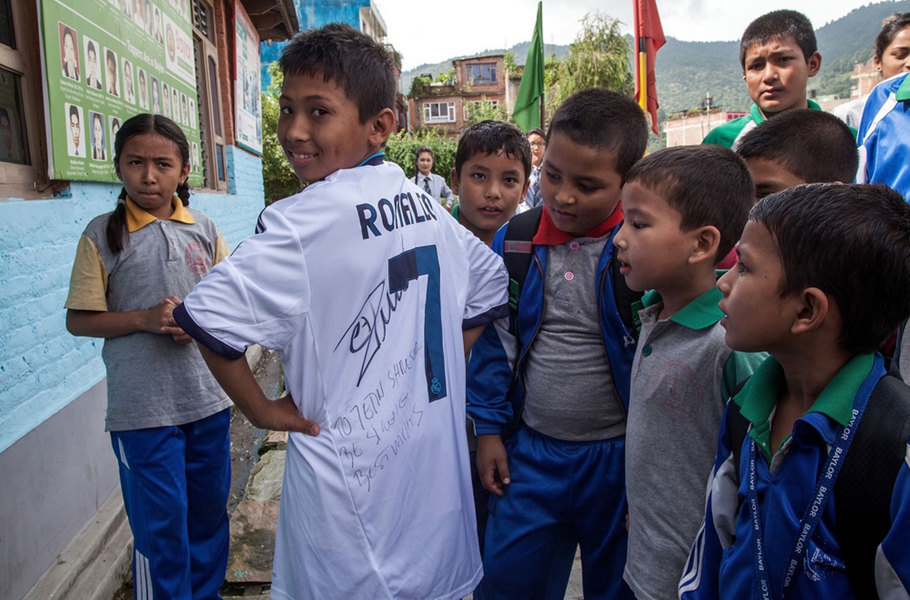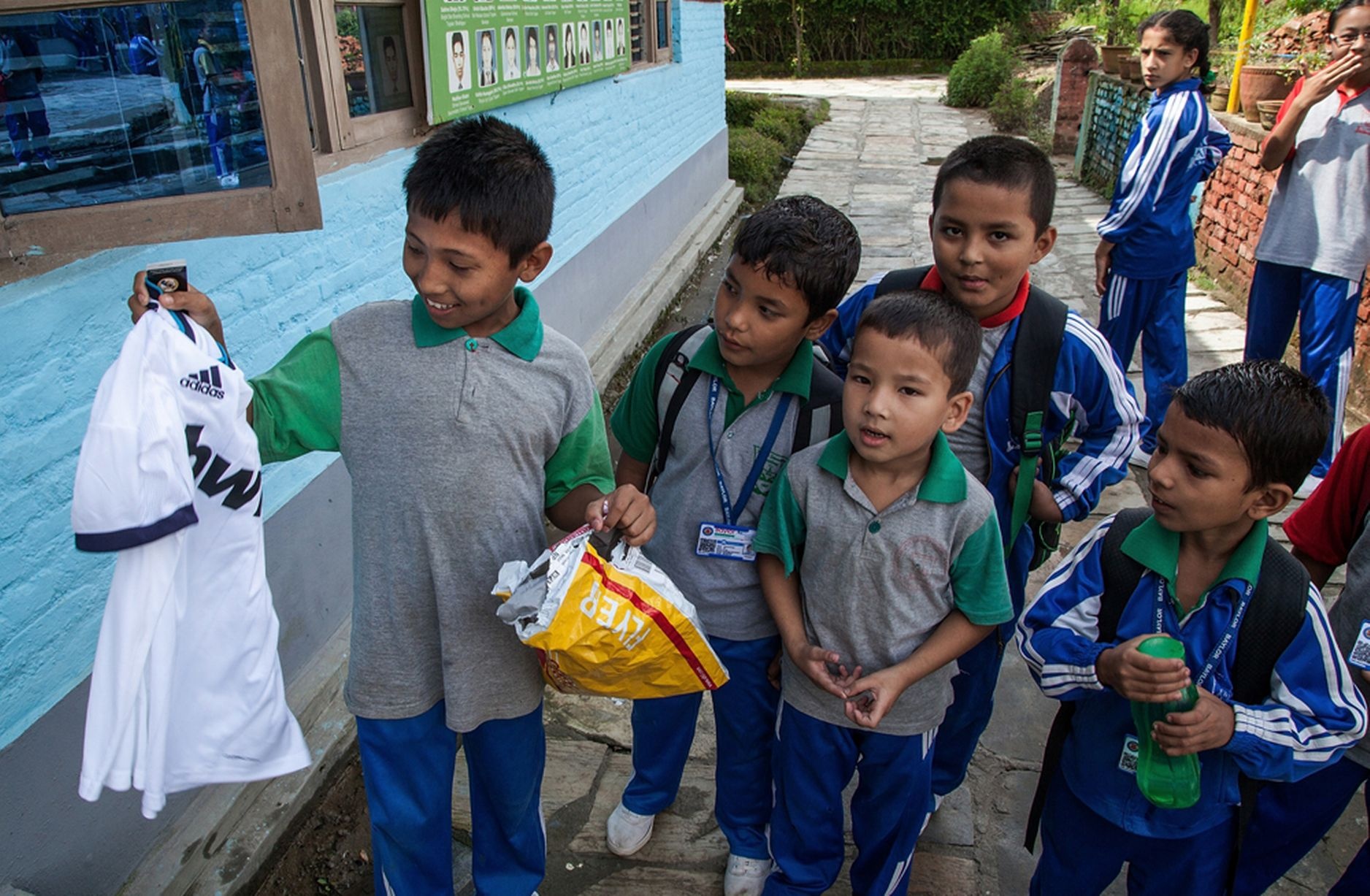 | Khi đang chơi đùa cùng các bạn tại một ngôi trường ở Banepa, miền trung Nepal, Jetin Shrestha bất ngờ nhận được món quà từ Tây Ban Nha xa xôi. |