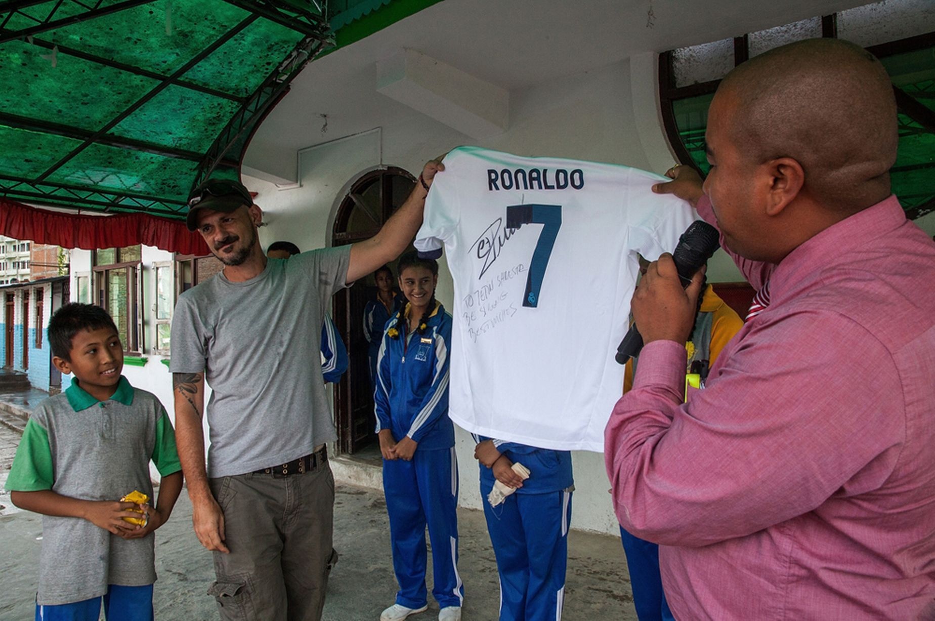 Cậu bé Nepal bất ngờ khi nhận món quà từ Ronaldo
