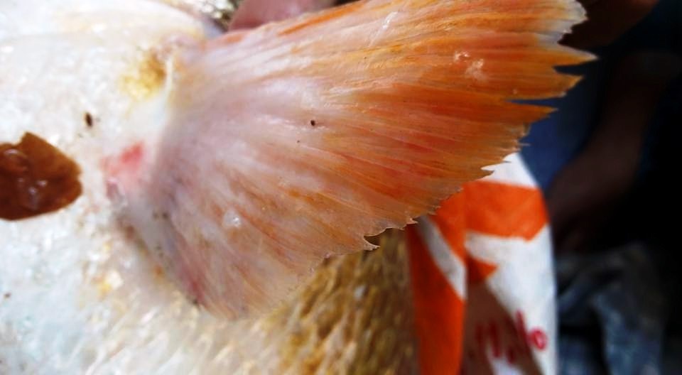 | Vây và đuôi cá lạ nghi là cá Sủ Vàng. |