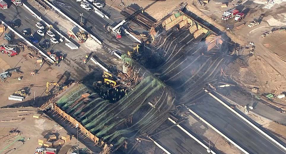 | Cây cầu qua đoạn giao cắt giữa Los Angeles và Las Vegas sập khiến giao thông đình trệ. |