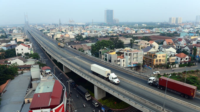 | Xe cộ lưu thông qua cầu Phú Mỹ (quận 7 - quân 2), TP.HCM chiều 3/1 |