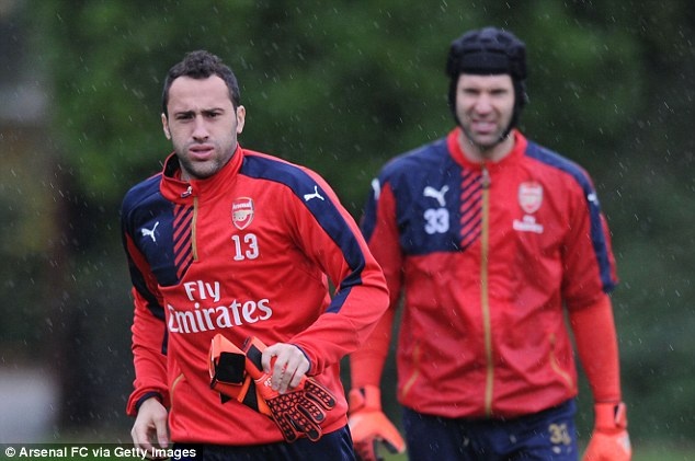| Thủ thành David Ospina (trái) thi đấu khá thuyết phục mùa trước. Tuy nhiên, anh chỉ sắm vai trò dự bị cho Petr Cech mùa này. |