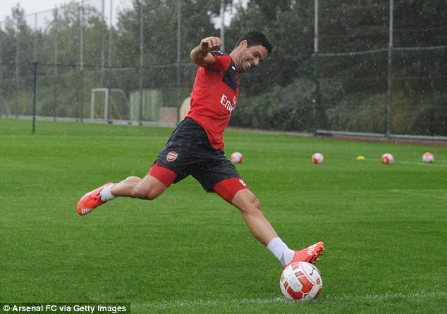 | Tiền vệ Mikel Arteta hoàn thành rất tốt nhiệm vụ cho dù anh lảo đảo trước khi tiếp bóng. |