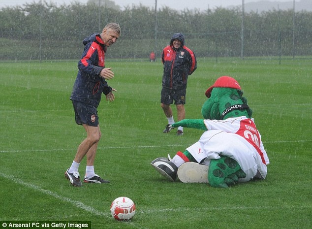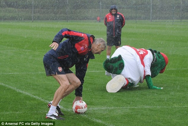 | Huấn luyện viên Arsene Wenger rất hào hứng trước kiểu sút với sự chuẩn bị hài hước. |