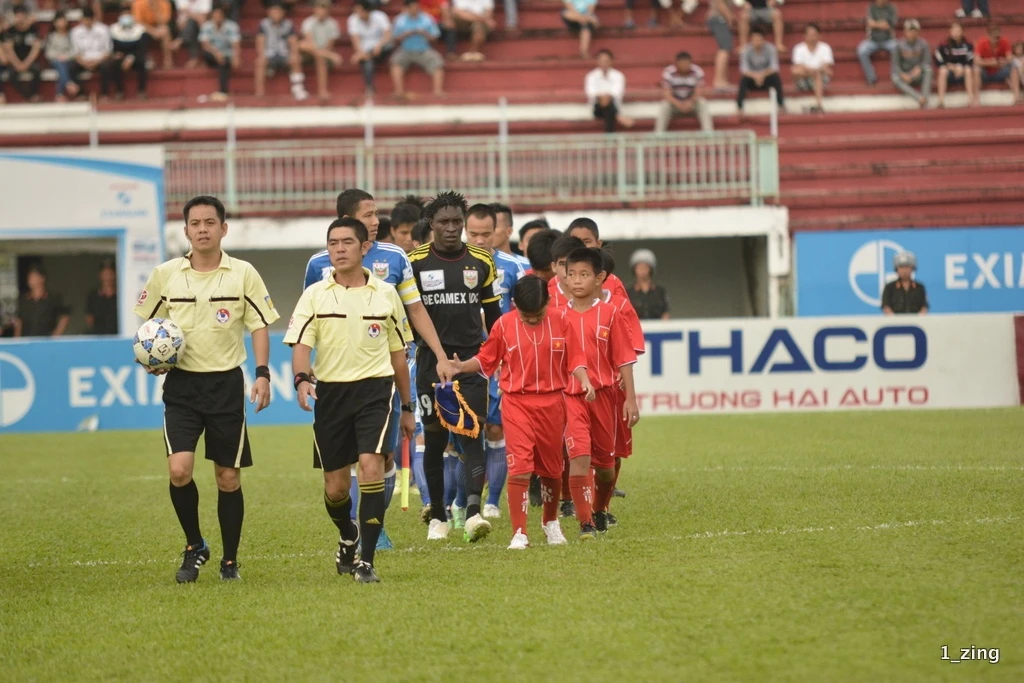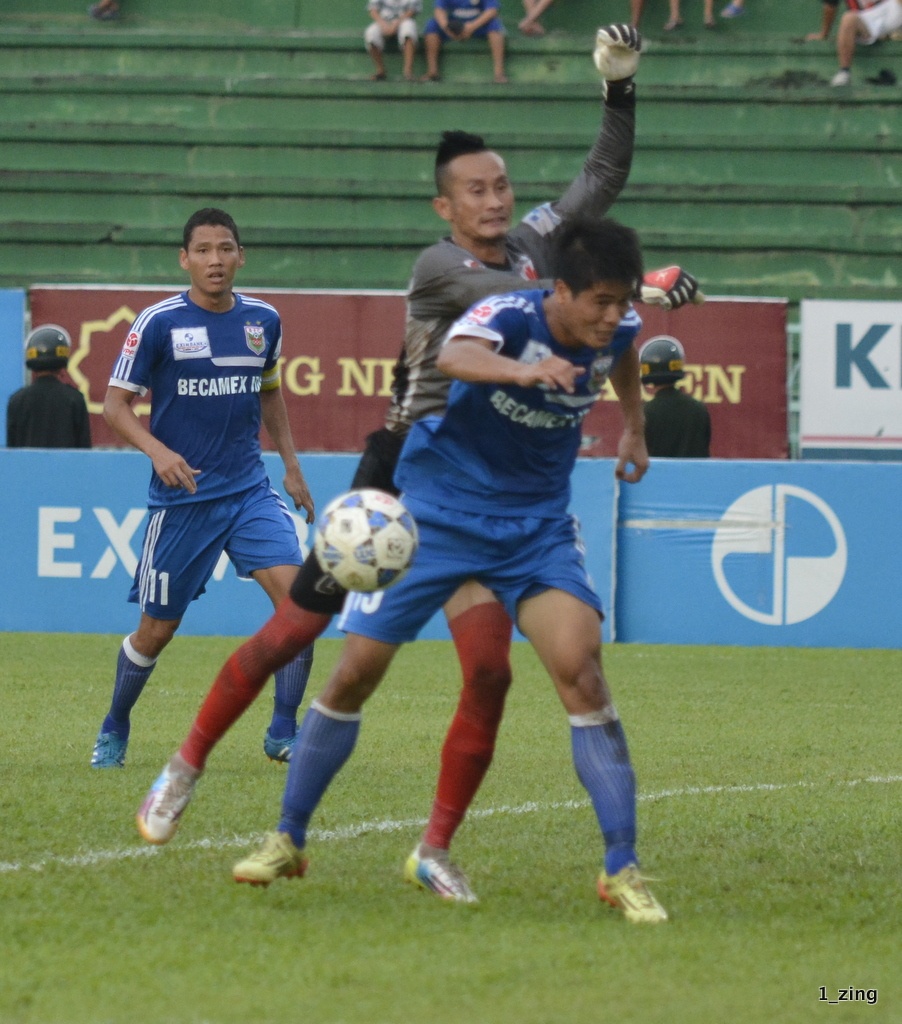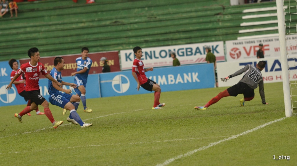 | Cầu thủ ghi bàn cho B.BD là Đặng Văn Thành sau 1 pha ra chân rất nhanh trong vòng cấm. |