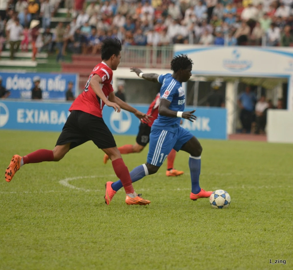 | Sau hàng loạt cơ hội bị bỏ lỡ trong đó có 2 cú dội cột dọc của Âu Văn Hoàn và Anh Đức, Abass đã có liền 2 bàn thắng hết sức dễ dàng ở các phút 30, 38 giúp B.BD dẫn 3-0. |