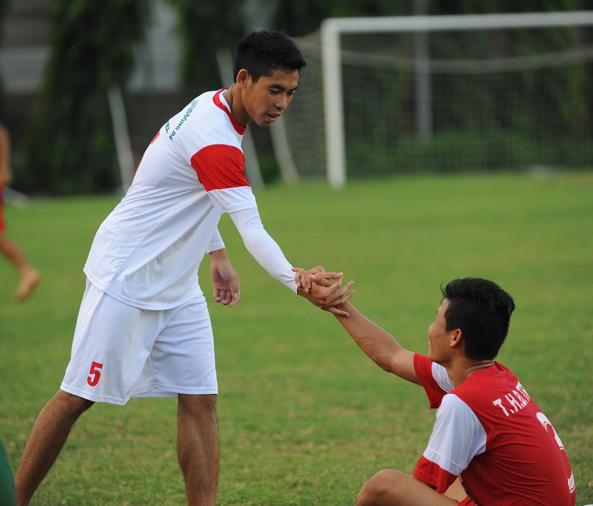 | Trương Văn Thiết trò truyện cùng Trường 'Híp' và khích lệ các đồng đội quyết tâm giành chiến thắng để lần thứ 2 liên tiếp lọt vào trận chung kết giải U19 Đông Nam Á. Tại giải đấu này năm ngoái, Văn Thiết cũng đã góp công không nhỏ đưa U19 Việt Nam đi tới trận đấu cuối cùng. |