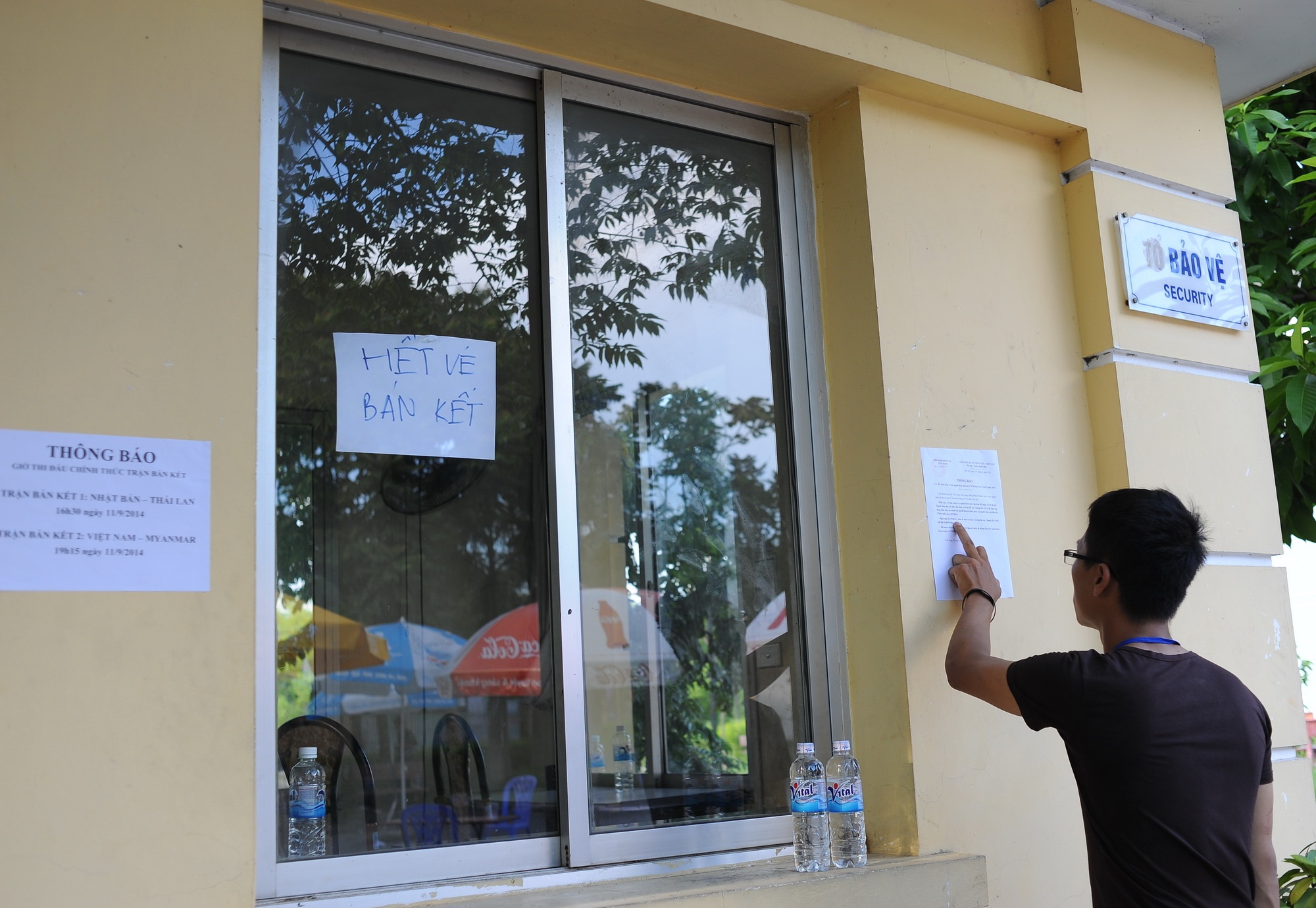 | BTC thông báo hết vé lúc 16h, trong khi theo thông báo quầy sẽ mở bán tới 17h khiến nhiều người hâm mộ vẫn cố nán lại chờ đợi ở cổng LĐBĐ Việt Nam. |