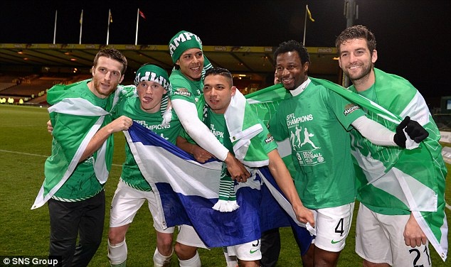 | Cầu thủ Celtic tưng bừng ăn mừng chiến thắng áp đảo ngay trên sân cỏ. |