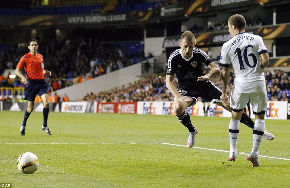 Được thi đấu trên sân nhà White Hart Lane, nhưng Tottenham bất ngờ bị dẫn bàn khi trận đấu diễn ra được 7 phút. Sau khi Kieran Trippier phạm lỗi với Ansi Agolli trong khu vực 16m50, Richard Almeida mở tỷ số cho Qarabag FK với cú sút 11 m thành công.
