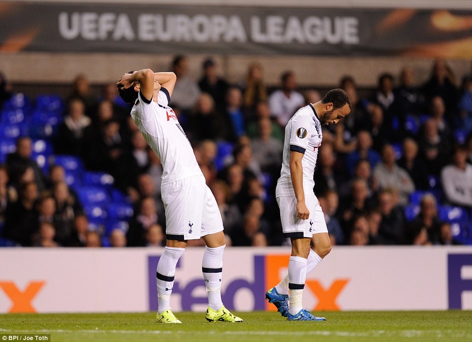 Son Heung-Min tiếc nuối khi bỏ lỡ cơ hội ghi bàn cho Tottenham sau cú sút đi chệch khung thành đội khách Qarabag FK (Azerbaijan) trong gang tấc.
