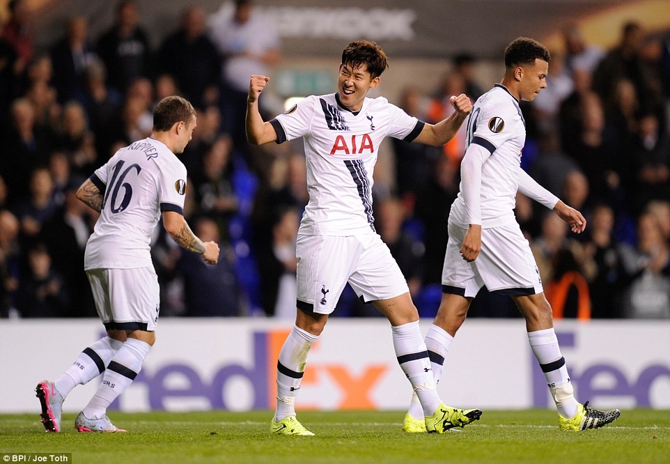 Tuyển thủ người Hàn Quốc vui mừng với pha lập công cho đội chủ nhà Tottenham tại Europa League. Anh là nhân tố mới thay thế Harry Kane ngồi dự bị ở trận này.