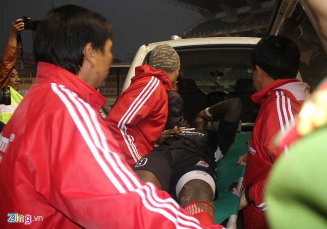 | Danny được đưa thẳng vào viện cấp cứu sau cú đạp mạnh chân của Đinh Văn Ta. |