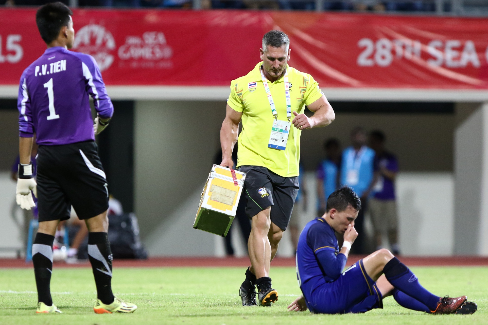 | Tristan Do là một trong những người chơi hay nhất bên phía U23 Thái Lan. Phút 77, anh tung cú sút hiểm hóc nâng tỷ số lên 3-0 cho U23 Thái Lan. Đây là pha lập công thứ 2 của anh ở SEA Games năm nay sau bàn thắng đầu tiên vào lưới U23 Brunei. |