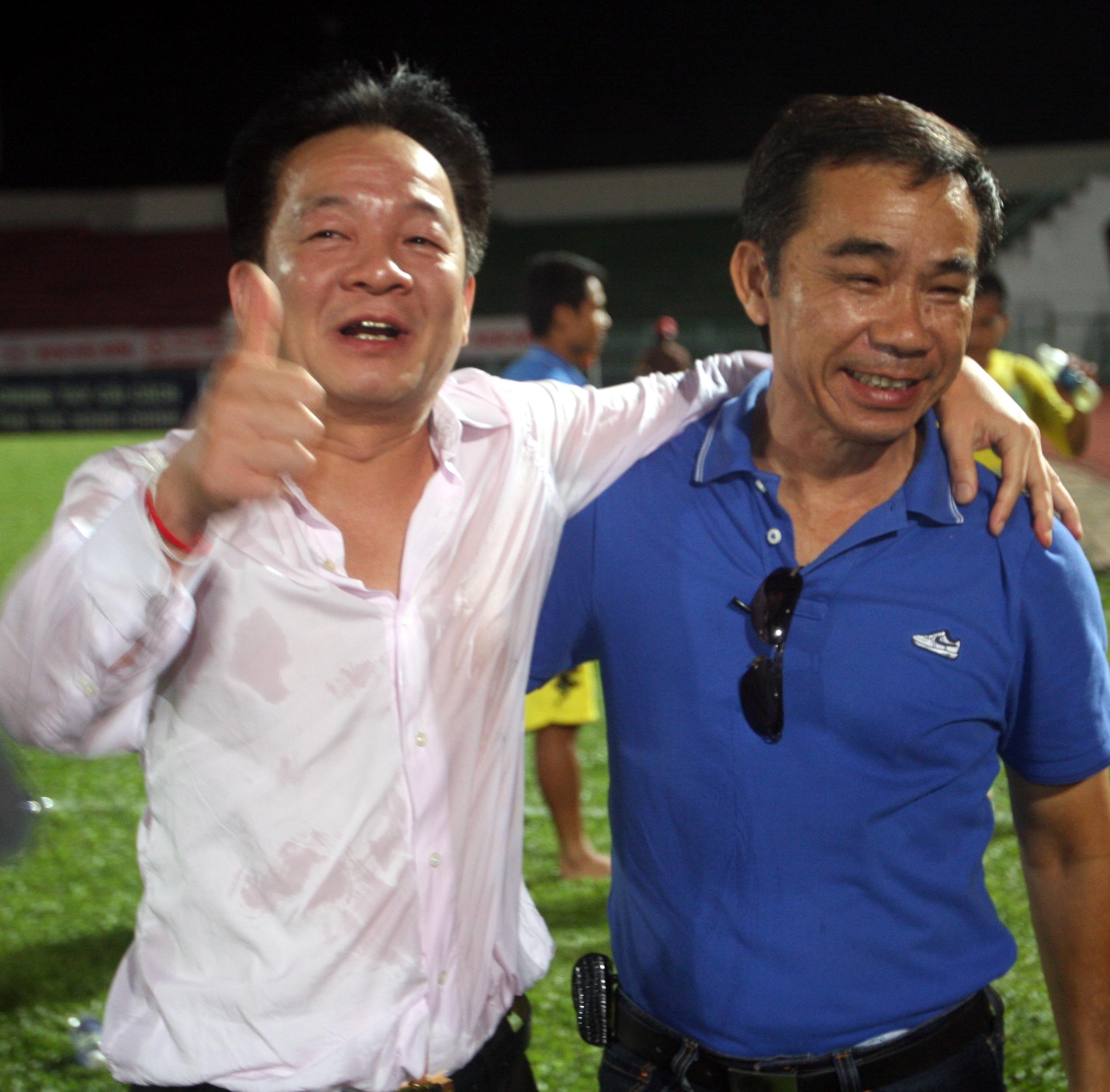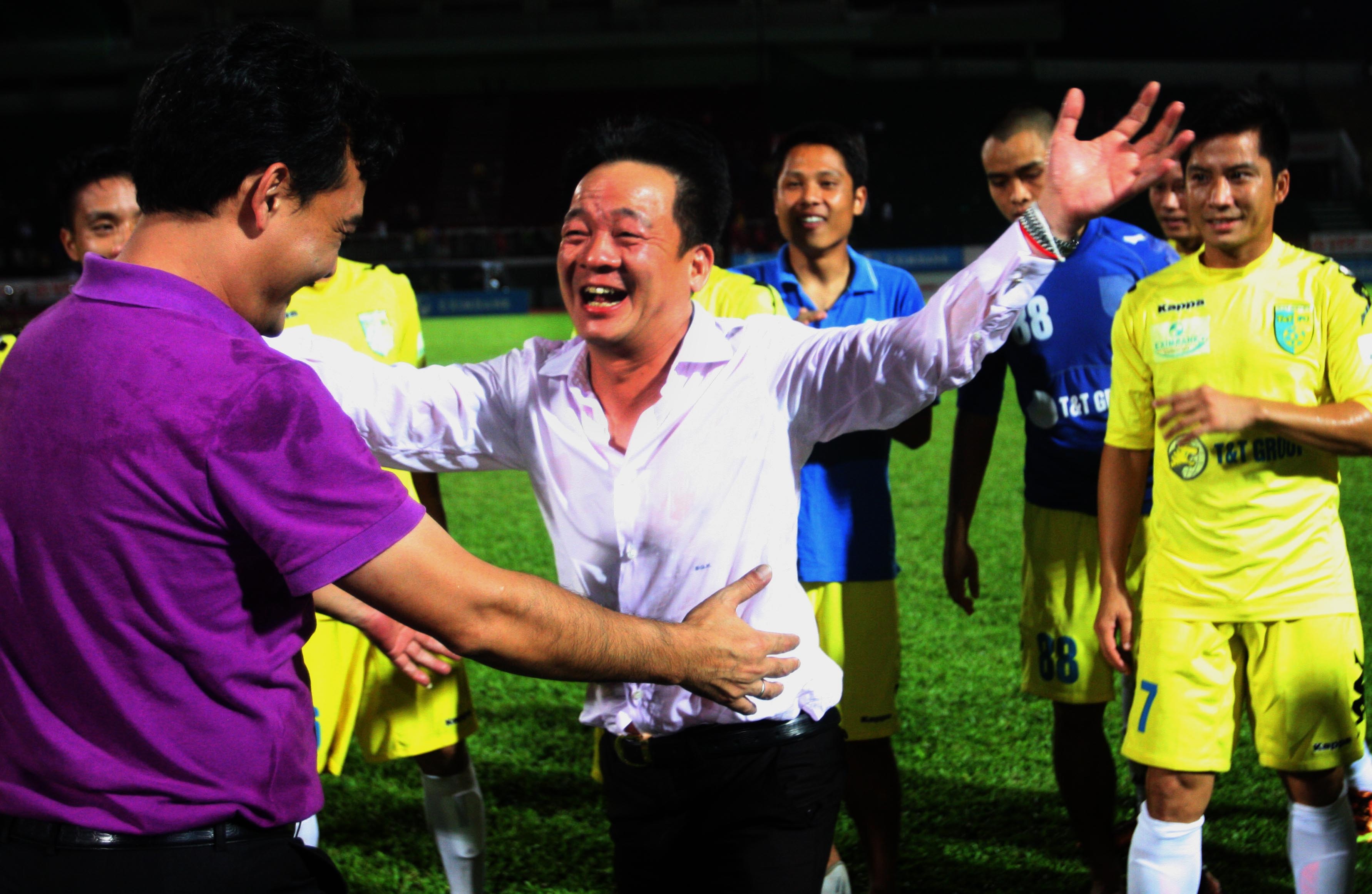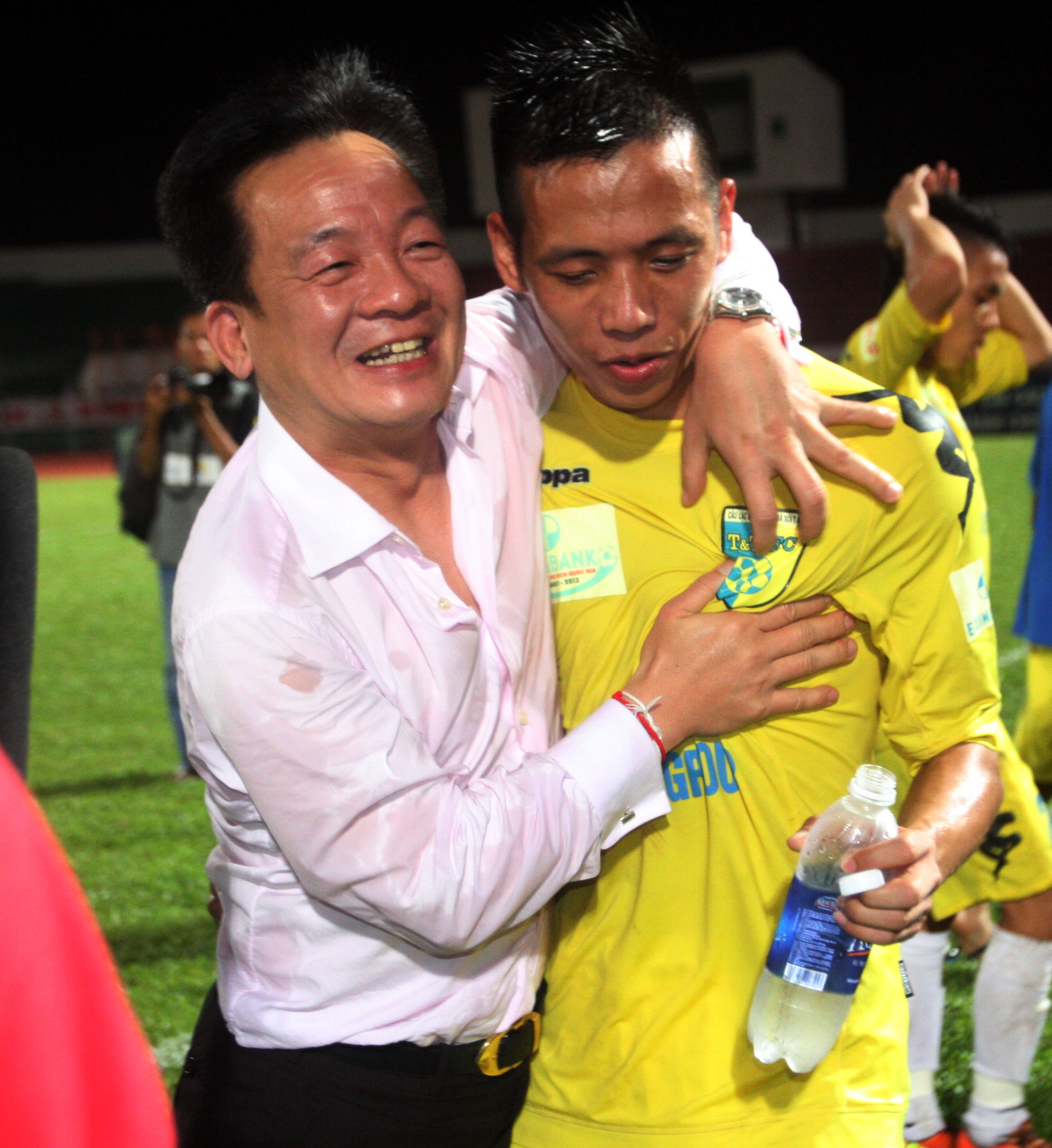 | Bầu Hiển vui mừng với chiến thắng của đội nhà, ông hứa sẽ thưởng đậm cho các cầu thủ nhưng không chắc sẽ nhiều như lần vô địch trước. |