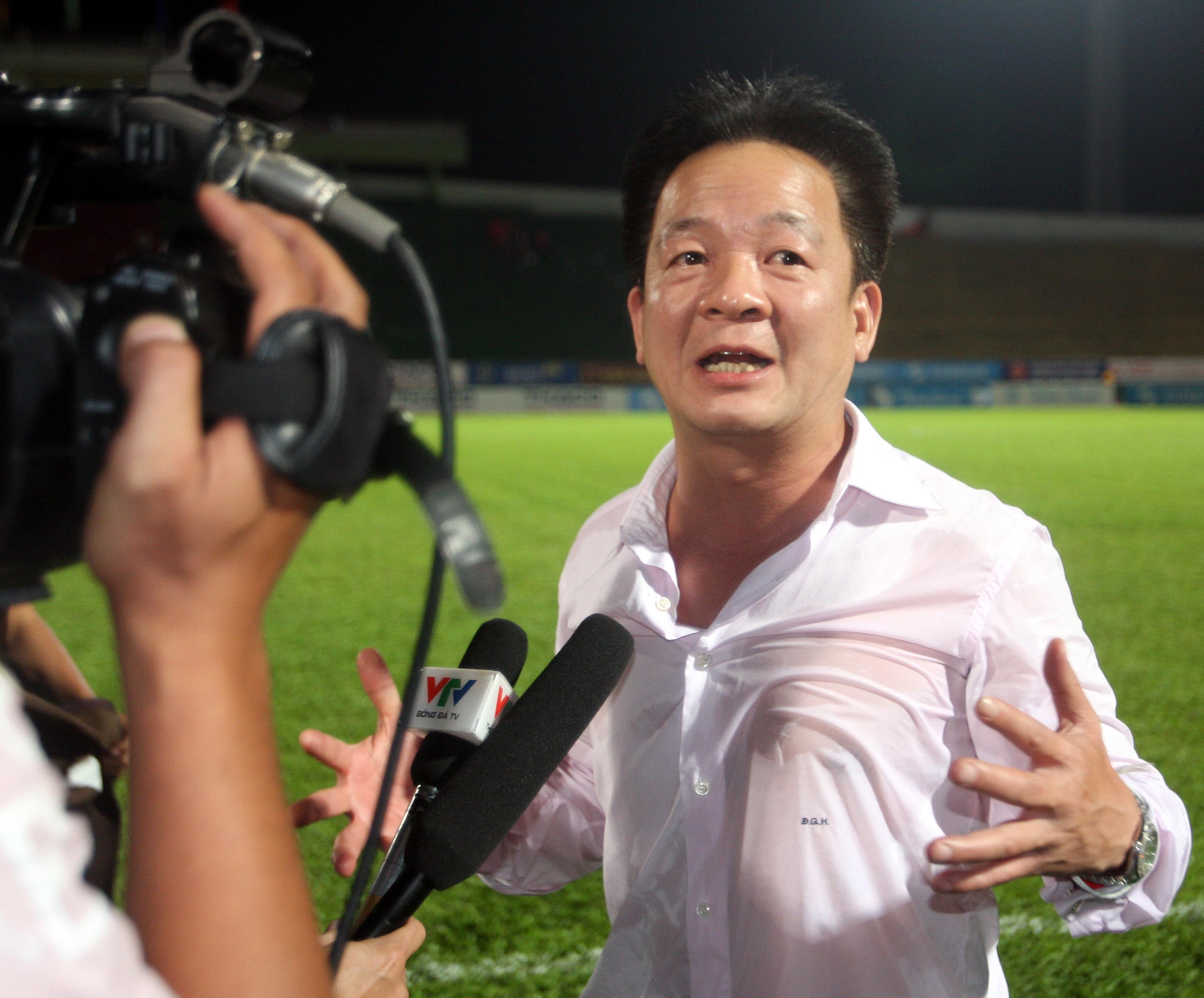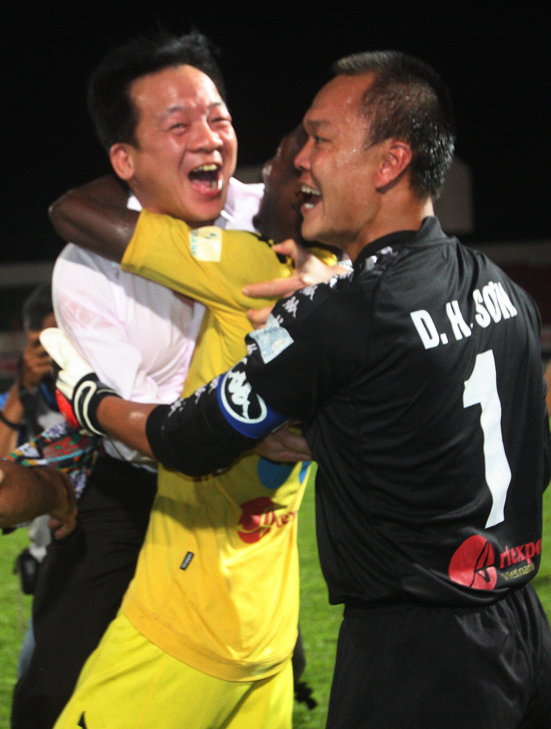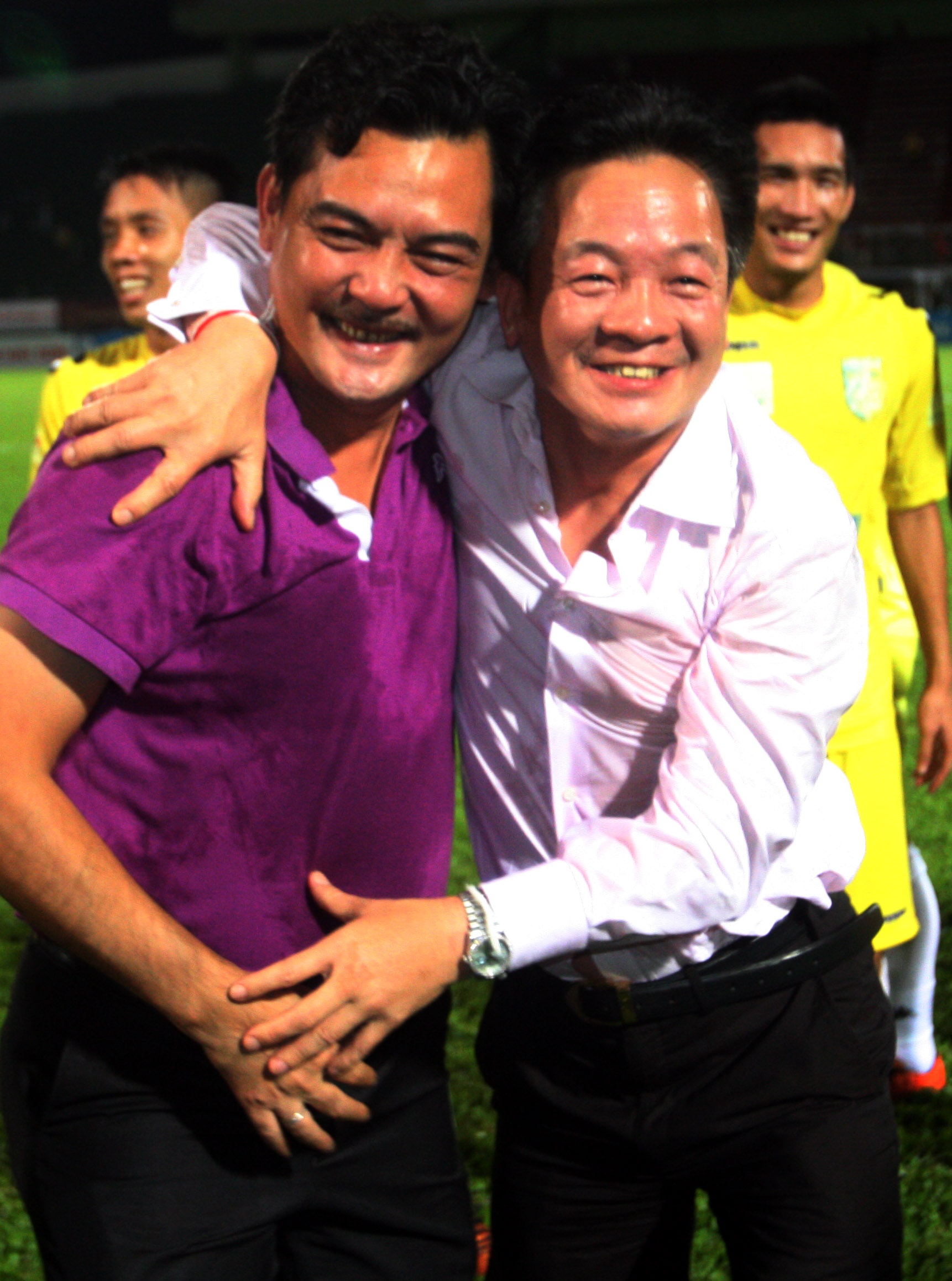 | Bầu Hiển vui mừng với chiến thắng của đội nhà, ông hứa sẽ thưởng đậm cho các cầu thủ nhưng không chắc sẽ nhiều như lần vô địch trước. |
