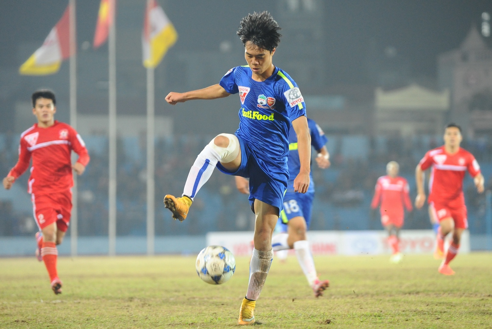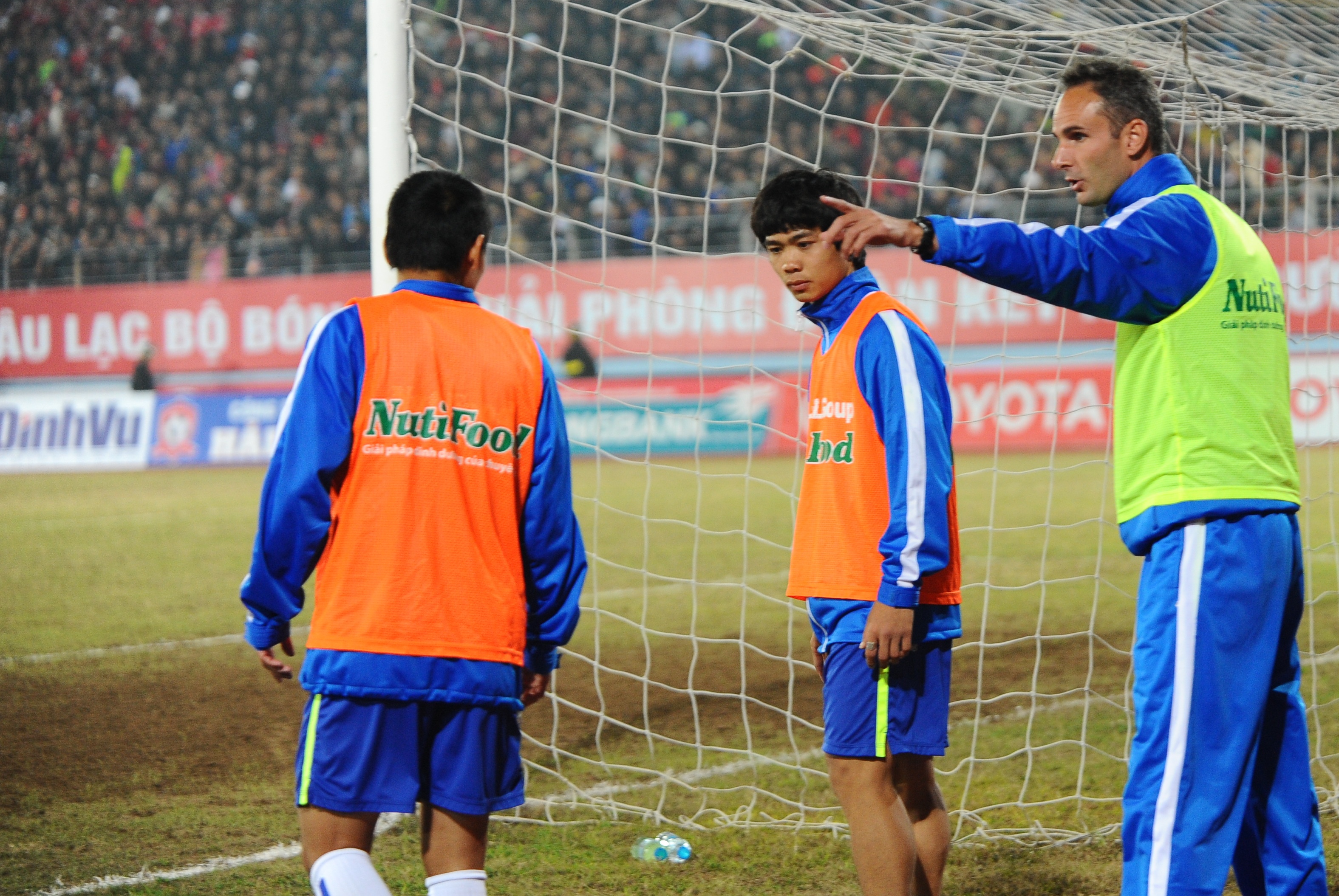 | Trước khi Công Phượng vào sân thi đấu, HLV thể lực của HAGL đã phải cho anh chạy quanh mặt cỏ vài vòng để tập làm quen. |
