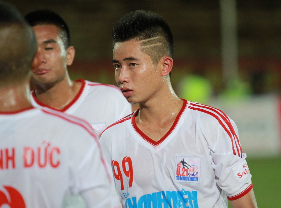 | Kiểu tóc lạ của trung vệ Đức Thịnh. |