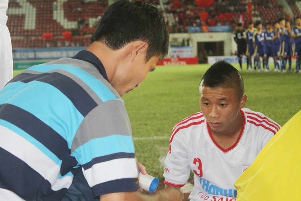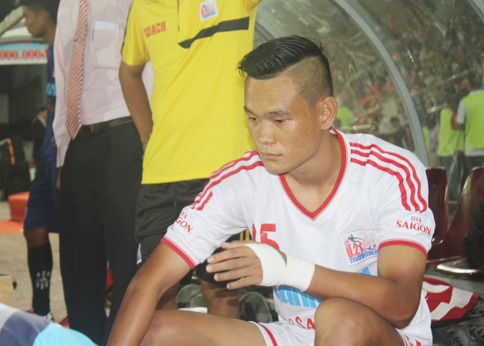 | Đáng tiếc, mới đá được hơn chục phút Thế Dương đã dính chấn thương, không thể tiếp tục thi đấu. |