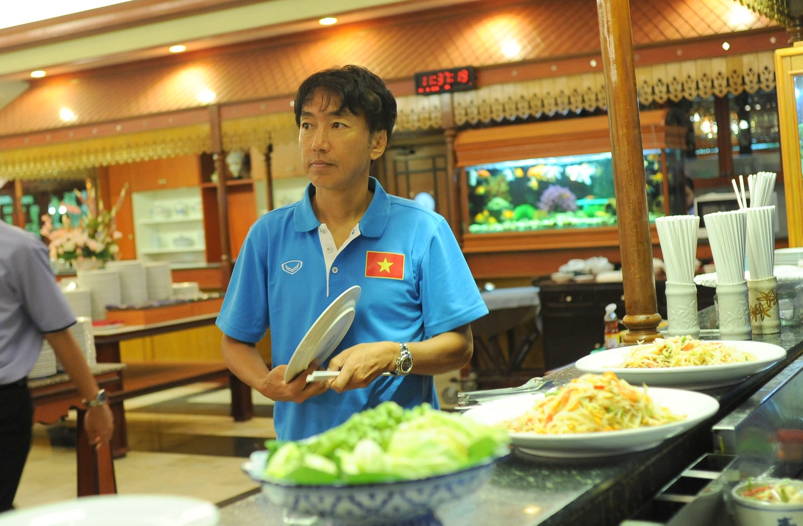 | HLV Miura cùng các học trò có bữa ăn trưa vào lúc 11h30 tại khách sạn Town in Town. Với thực đơn hàng trăm món, khách sạn 4 sao ở Thái Lan đáp ứng mọi nhu cầu về khẩu vị của 23 cầu thủ Olympic Việt Nam. |