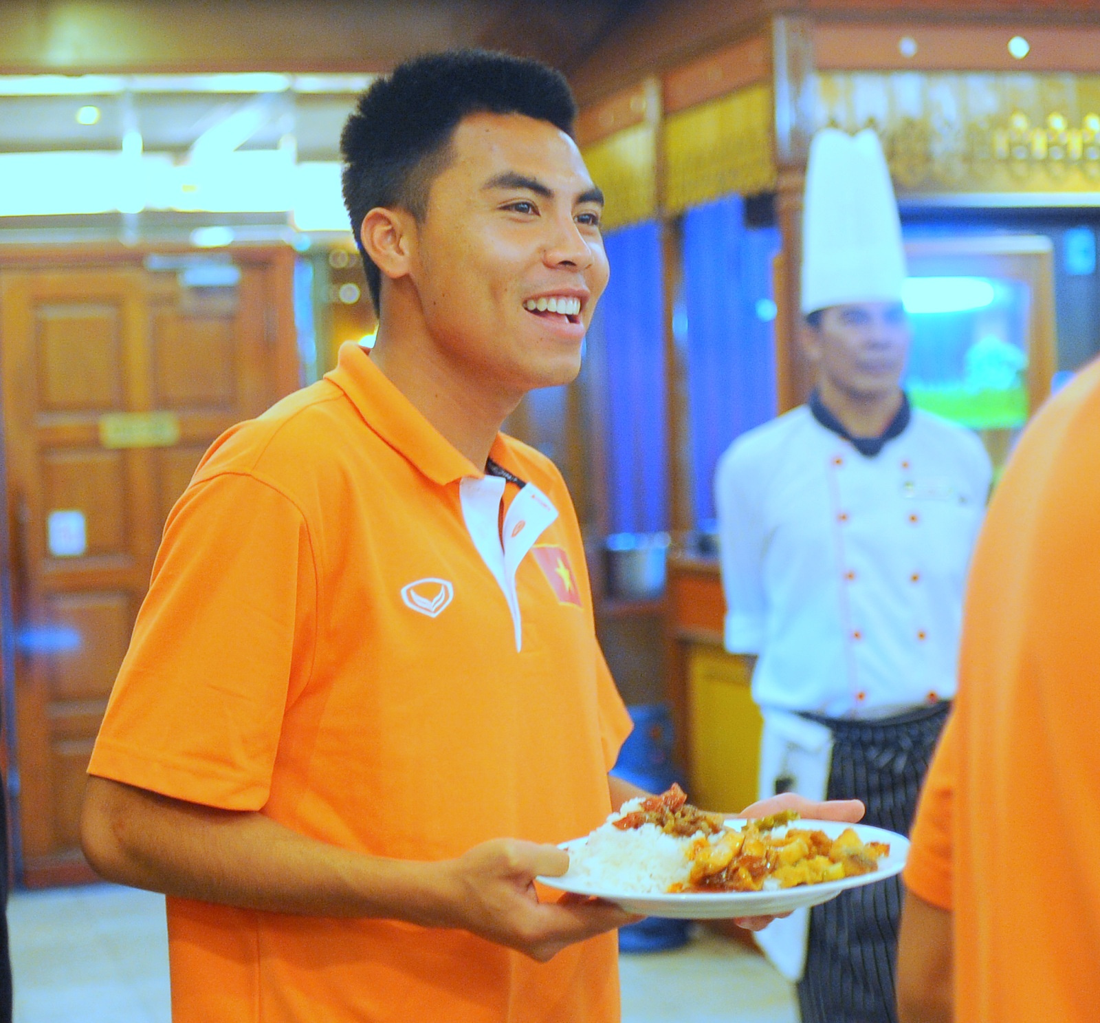 | Toàn đội kết thúc bữa ăn trưa lúc 12h15' và trở về phòng nghỉ ngơi. 16h chiều 21/3, ĐT Olympic Việt Nam có buổi tập làm quen sân thi đấu SVĐ Royal Thai Army (Quân đội Hoàng gia Thái Lan). |