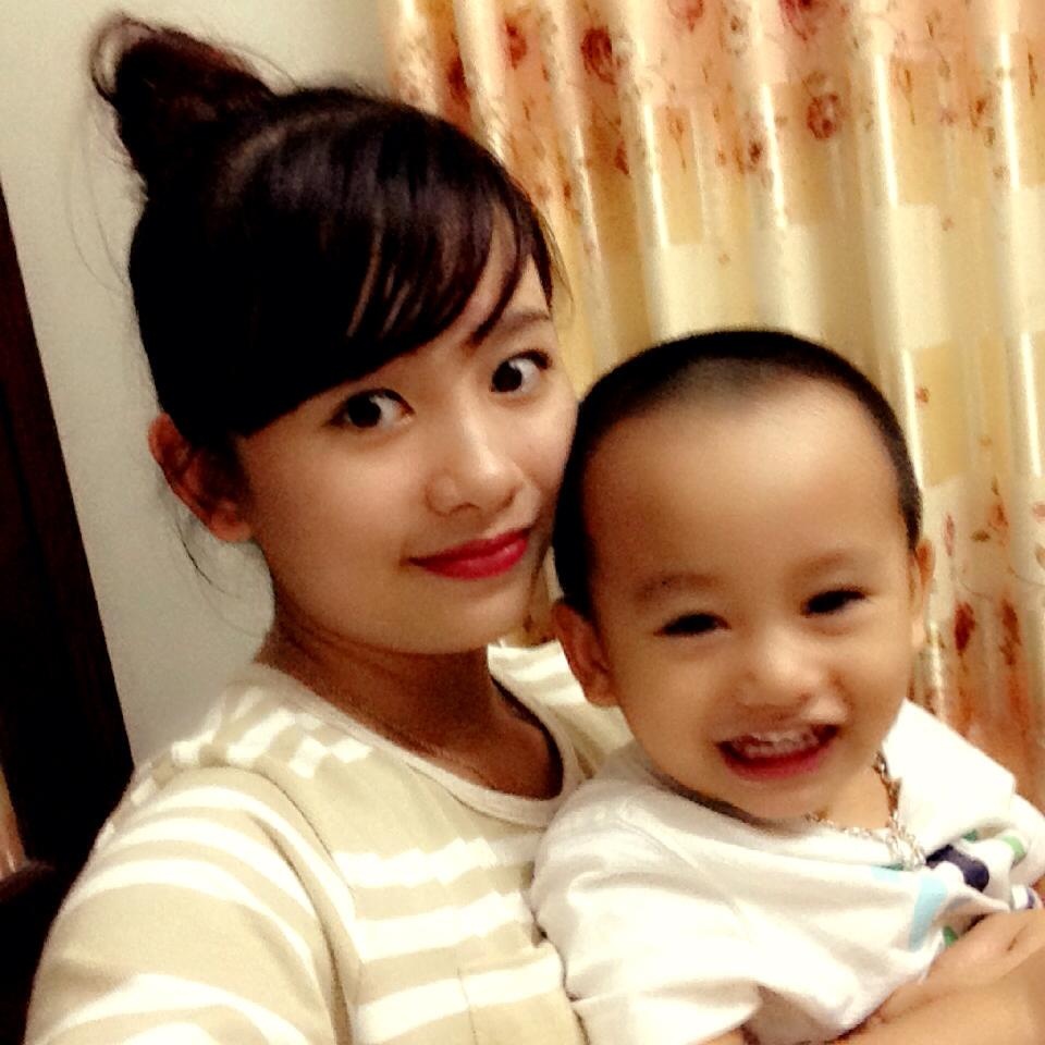 | Người vợ trẻ Đinh Thị Nhung đang mang thai ở tháng thứ 2 và con trai đầu lòng Vũ Tuấn Anh của tiền vệ Minh Tuấn. |