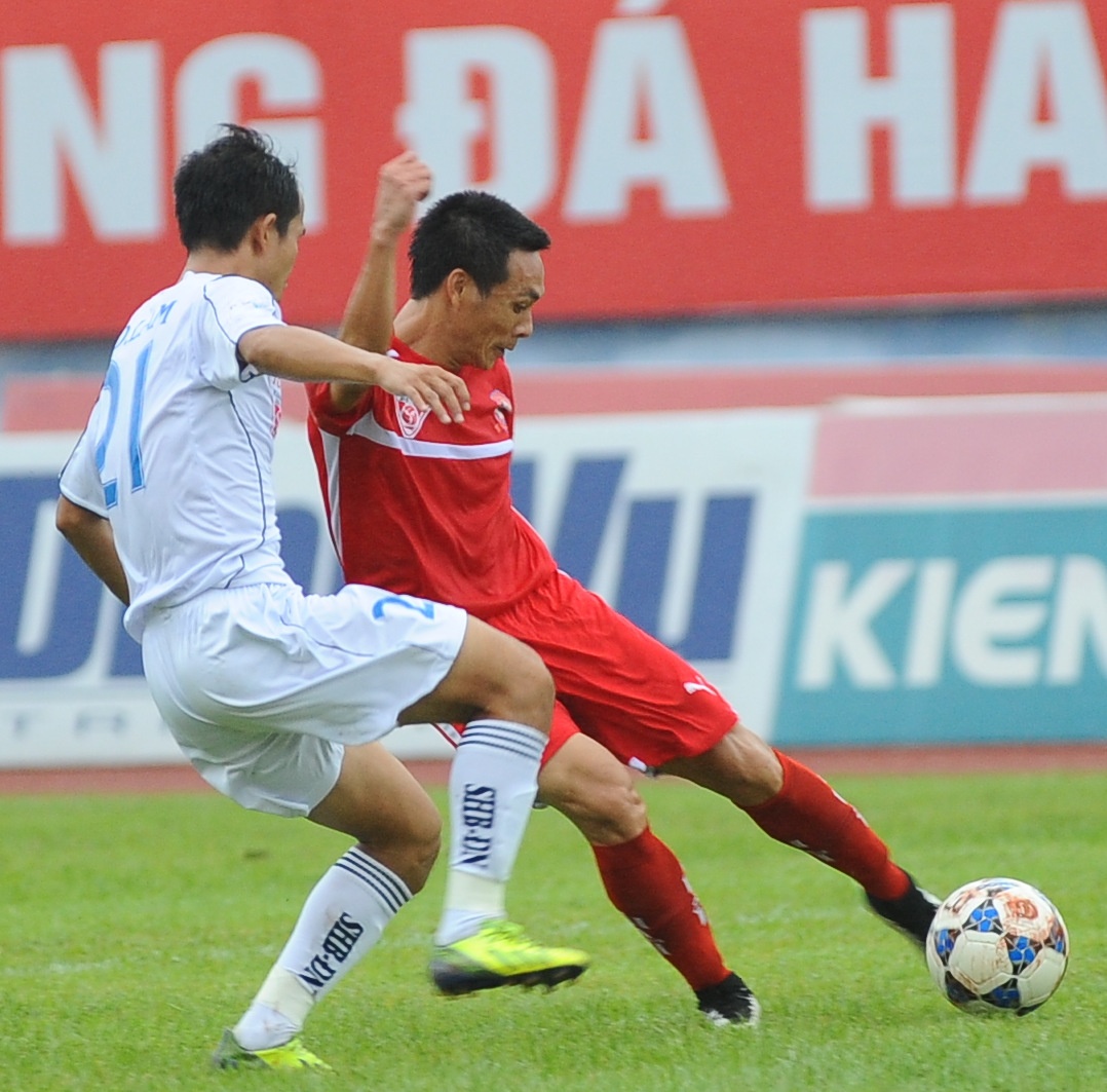 | Trận đấu diễn ra với thế trận cân bằng khi cả Đà Nẵng và Hải Phòng cùng đẩy cao đội hình chơi tấn công đẹp mắt. Phút 35 của hiệp 1, tiền vệ Phùng Văn Nhiên - người vừa trở lại được 1 tháng sau chấn thương vỡ xương quai xanh tận dụng sai lầm của hậu vệ Đà Nẵng, tung pha dứt điểm quyết đoán từ ngoài khu vực 16,5 m để mở tỷ số cho đội chủ nhà. |
