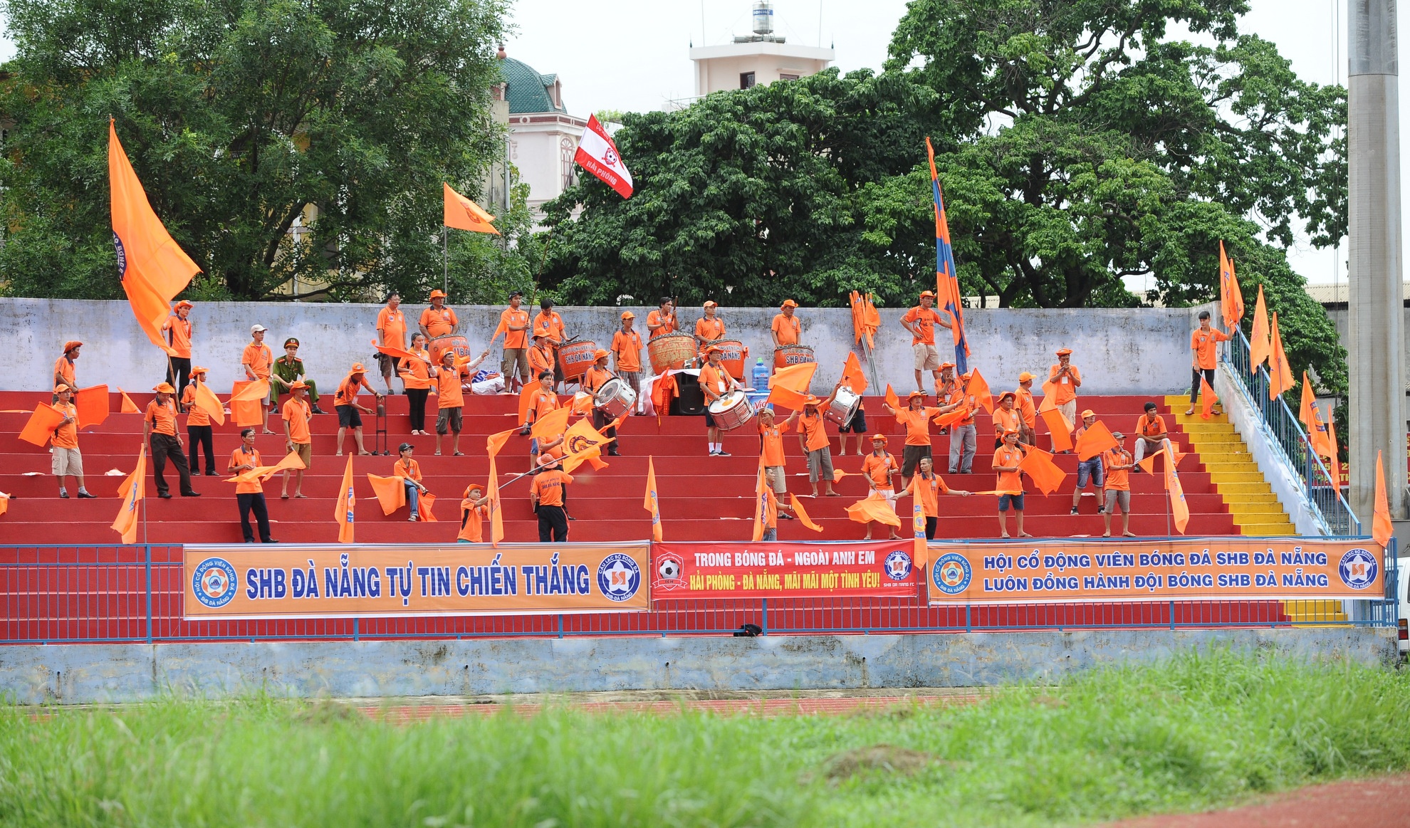 | Khoảng 50 CĐV từ Đà Nẵng vượt hơn 1.000 km có mặt tại Lạch Tray cổ vũ thầy trò HLV Lê Huỳnh Đức "lội ngược dòng". |