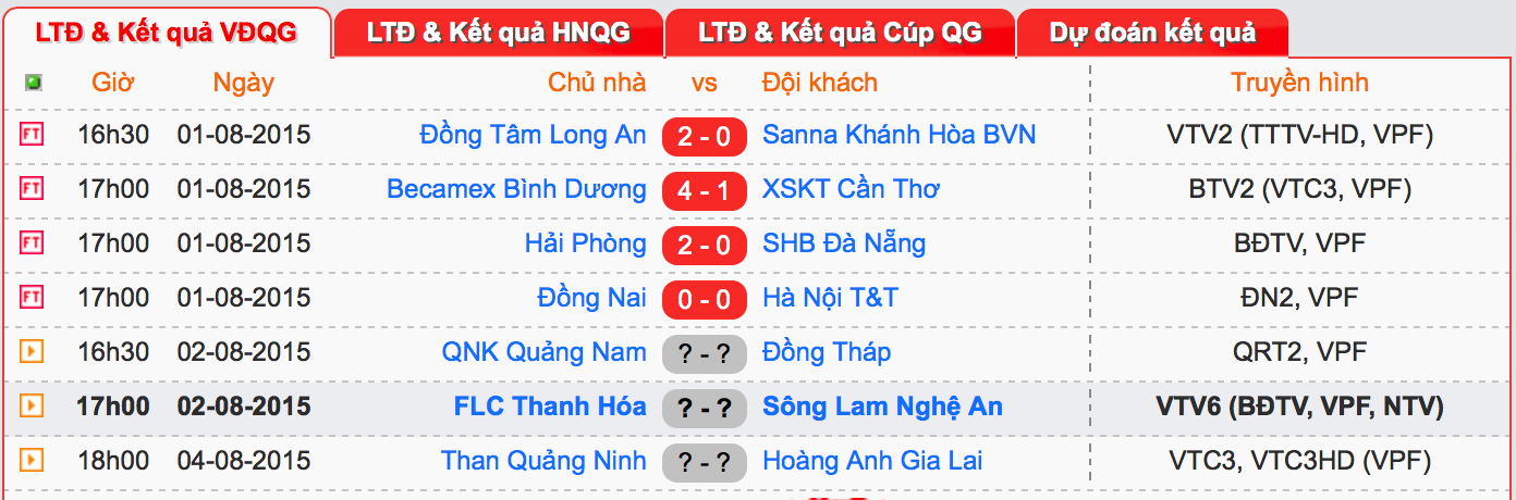 | Kết quả và lịch thi đấu các trận trong khuôn khổ vòng 19 V.League 2015. |