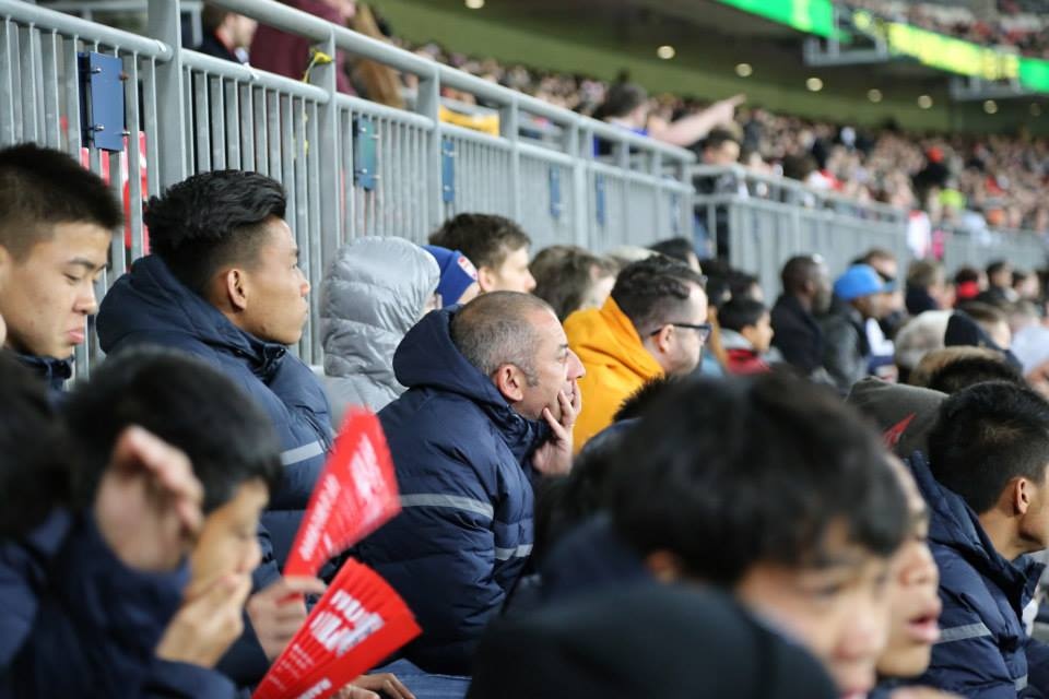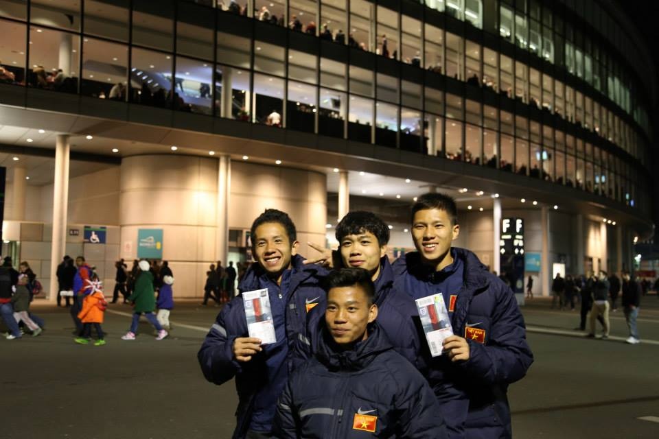 | Sau chiến thắng 3-0 trước U19 Arsenal, các cầu thủ U19 Việt Nam với tâm trạng thoải mái tới dự khán trận giao hữu quốc tế giữa Anh gặp Đan Mạch vào tối ngày 5/3. |
