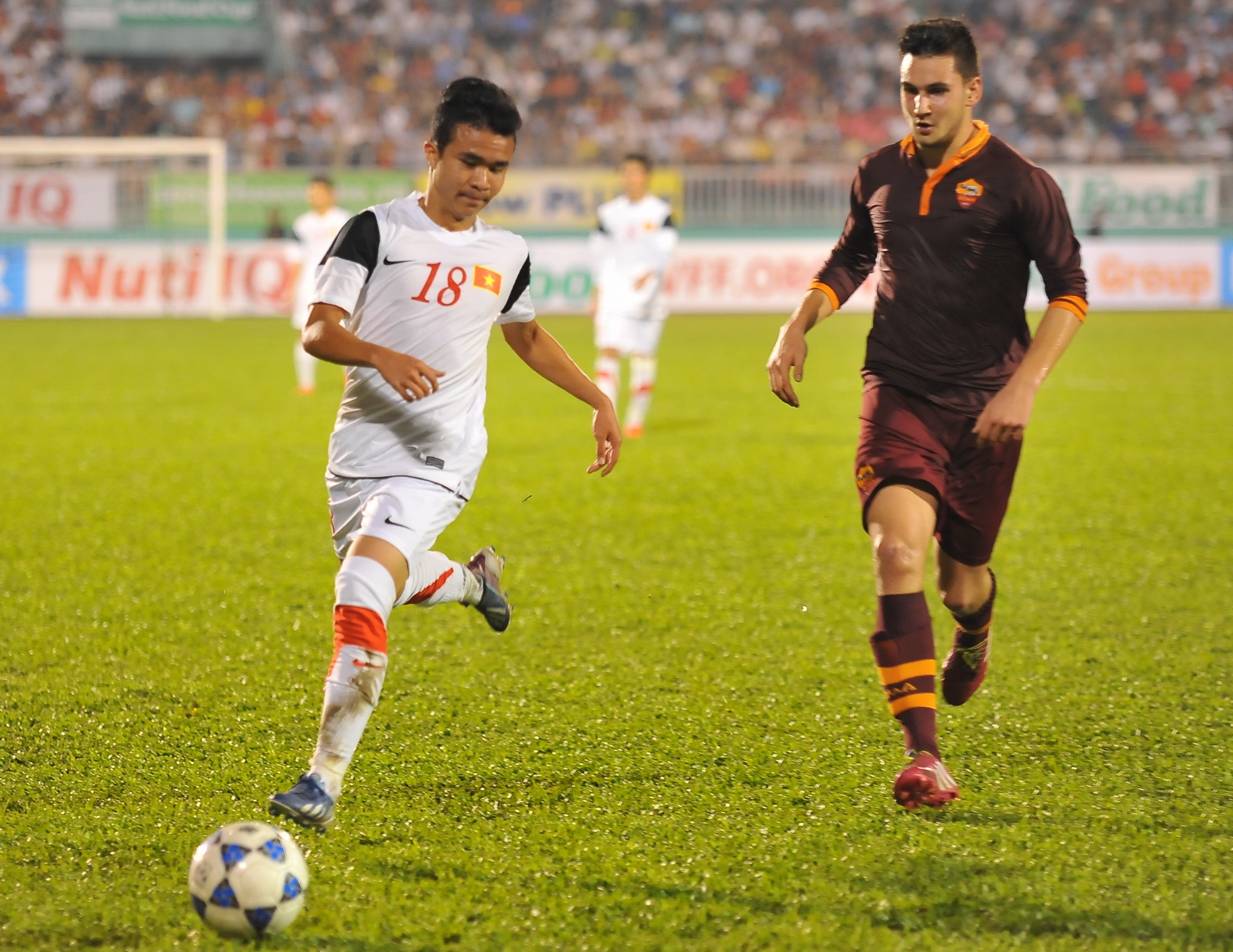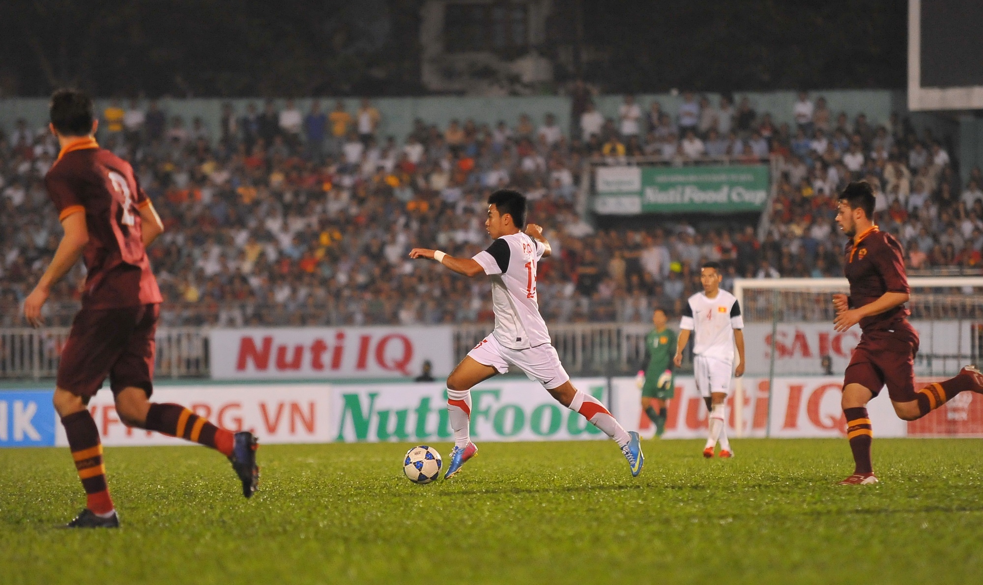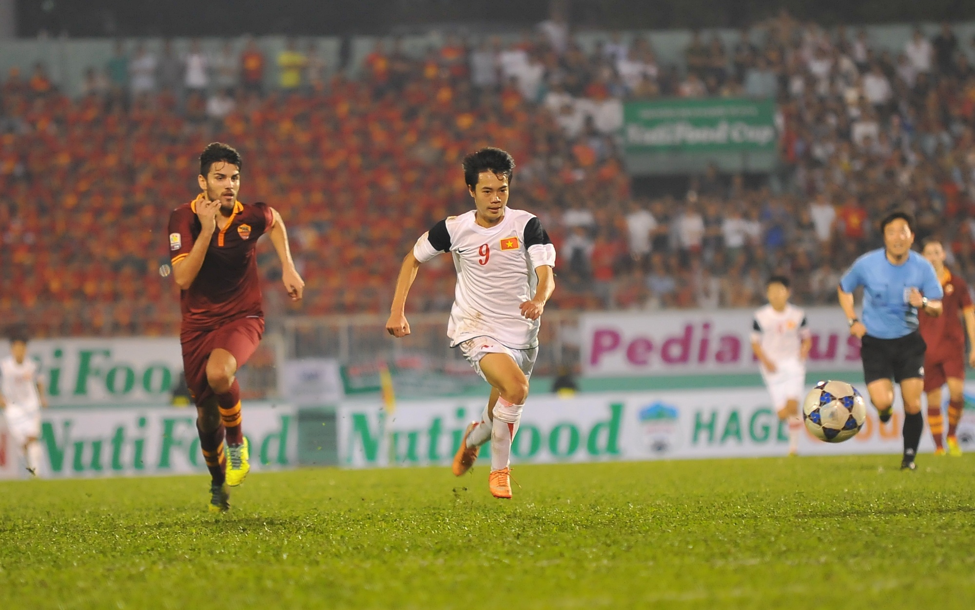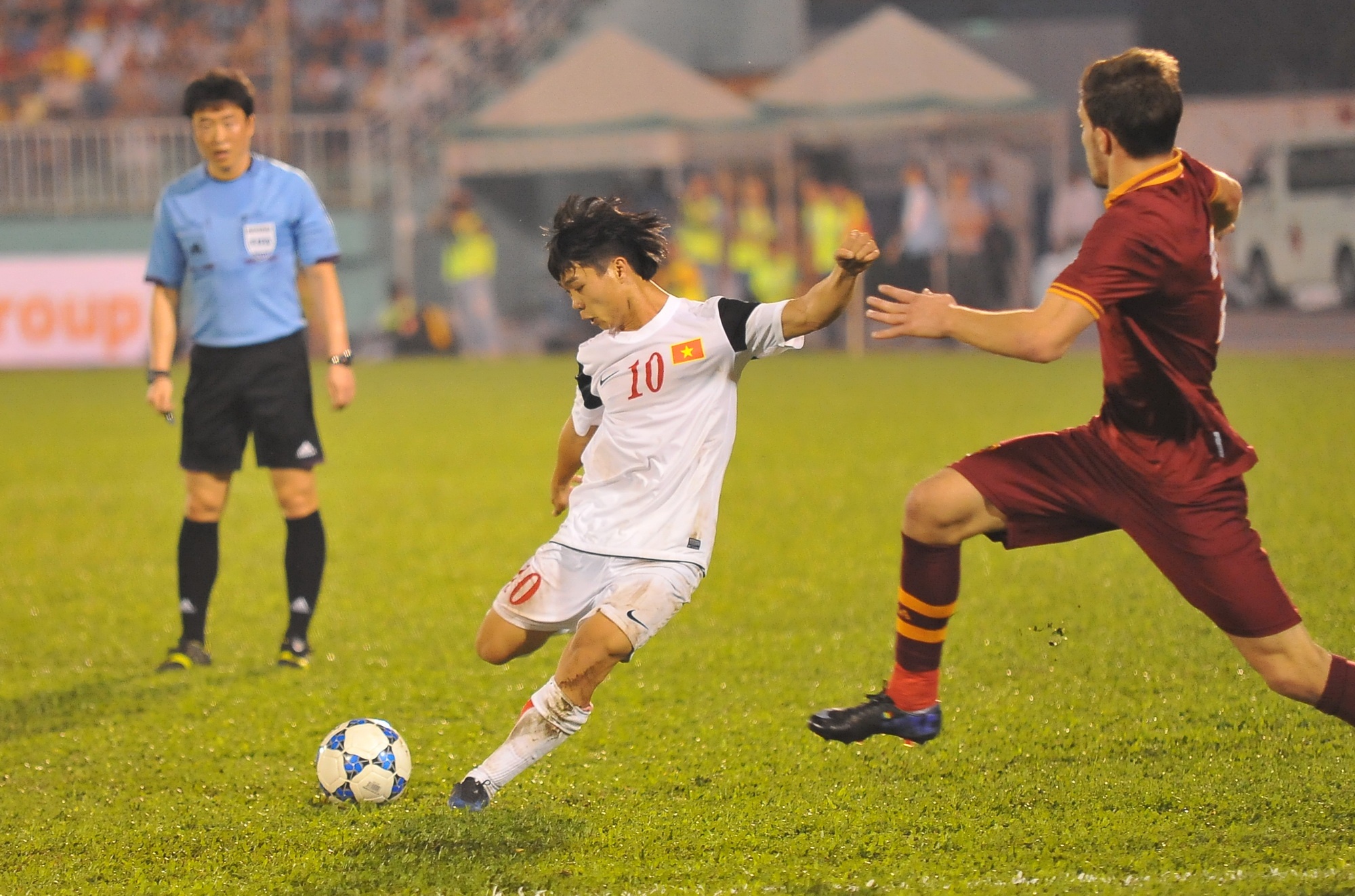 | Tuy nhiên cú sút của Công Phượng bị hậu vệ AS Roma kịp thời cản phá. |