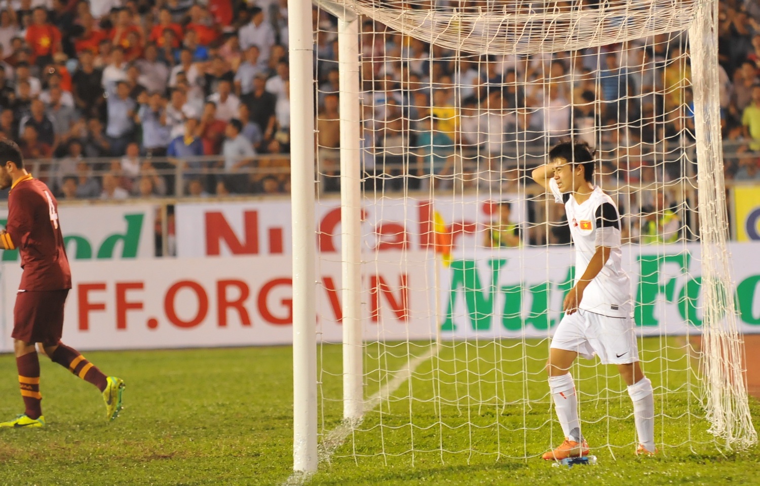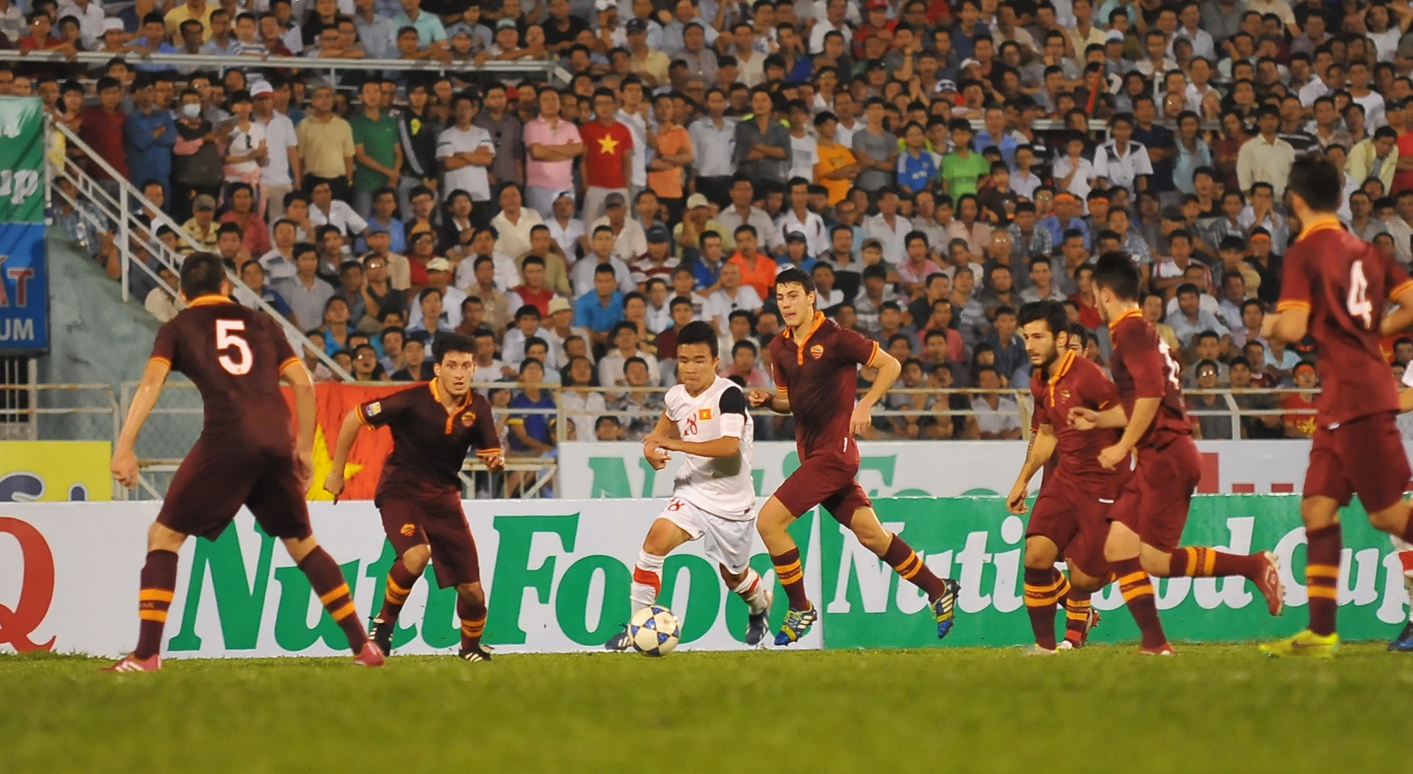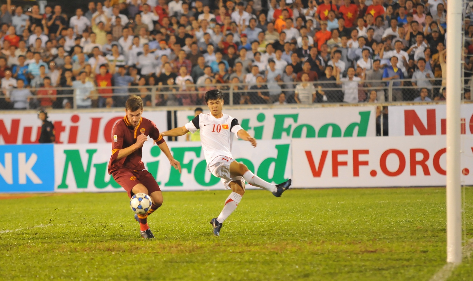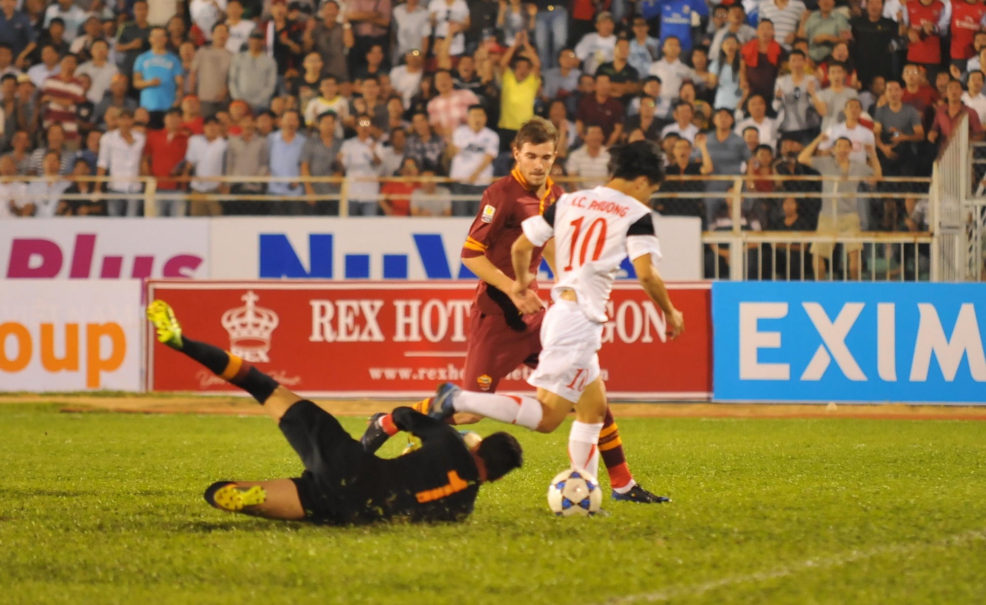 | Tuy nhiên cú sút của Công Phượng bị hậu vệ AS Roma kịp thời cản phá. |